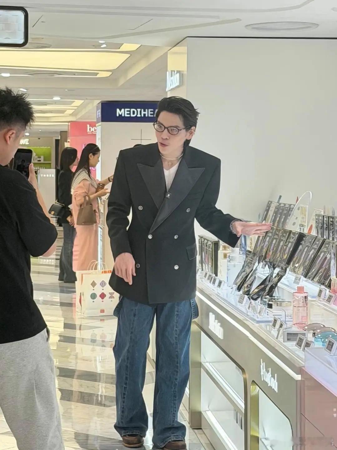 向佐在韩国一家免税店购物被偶遇,他的穿衣打扮时尚有型,虽然颜值不高,但身材又高又