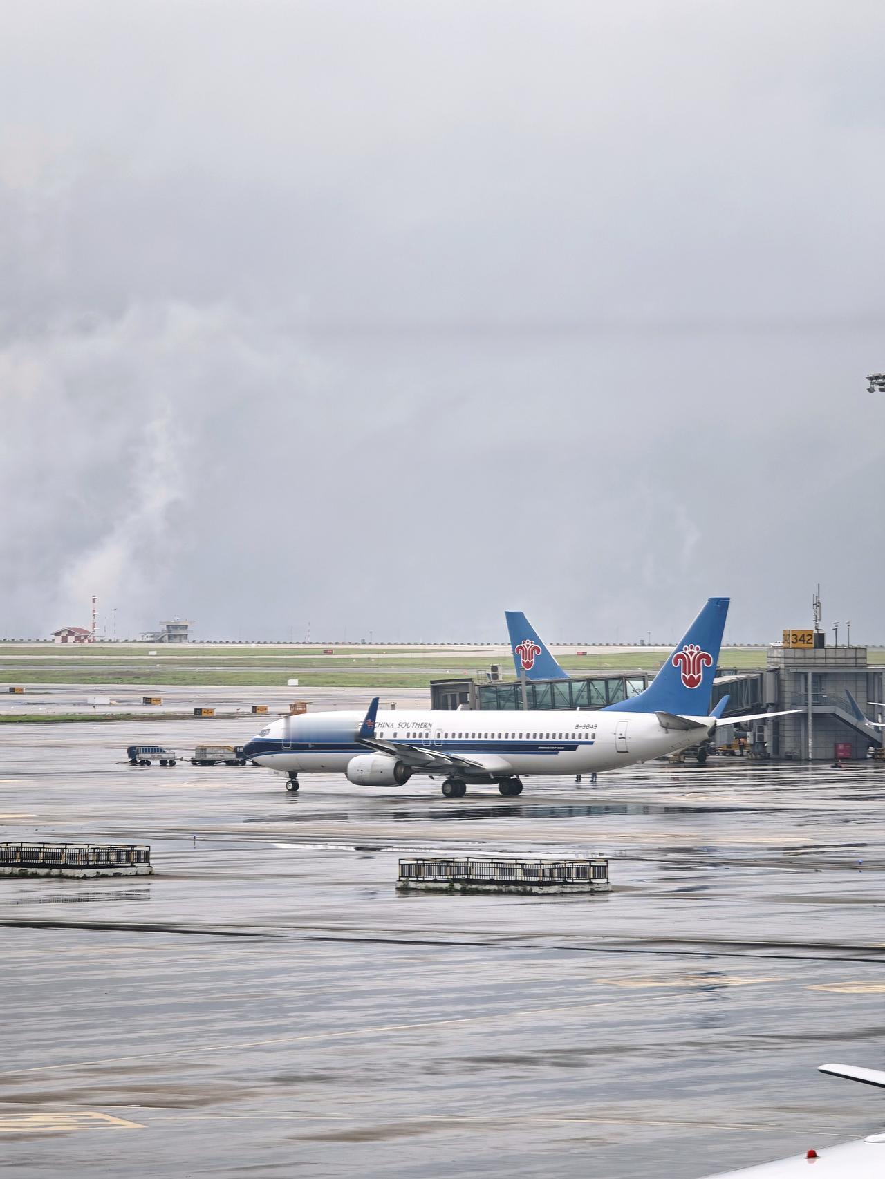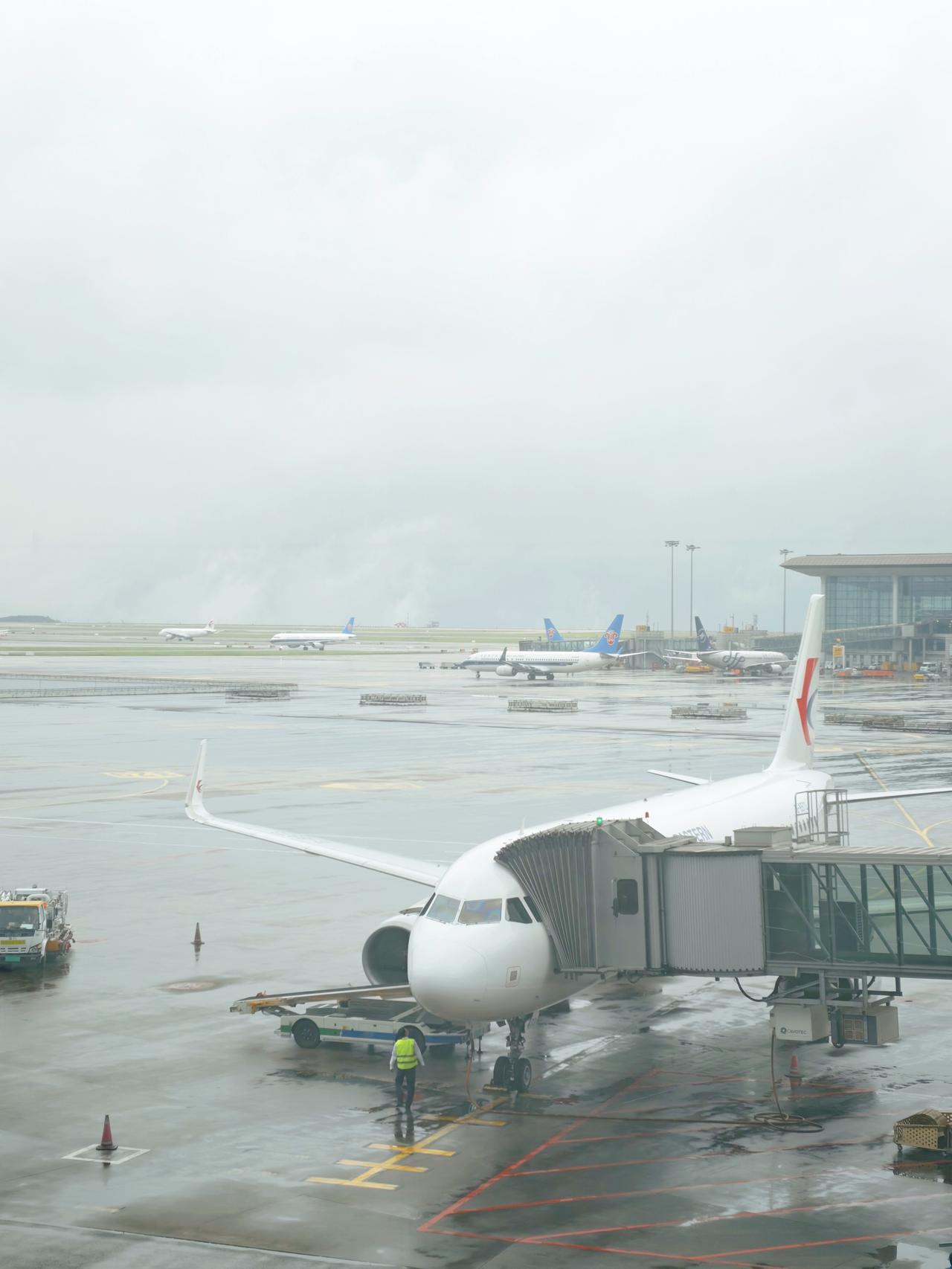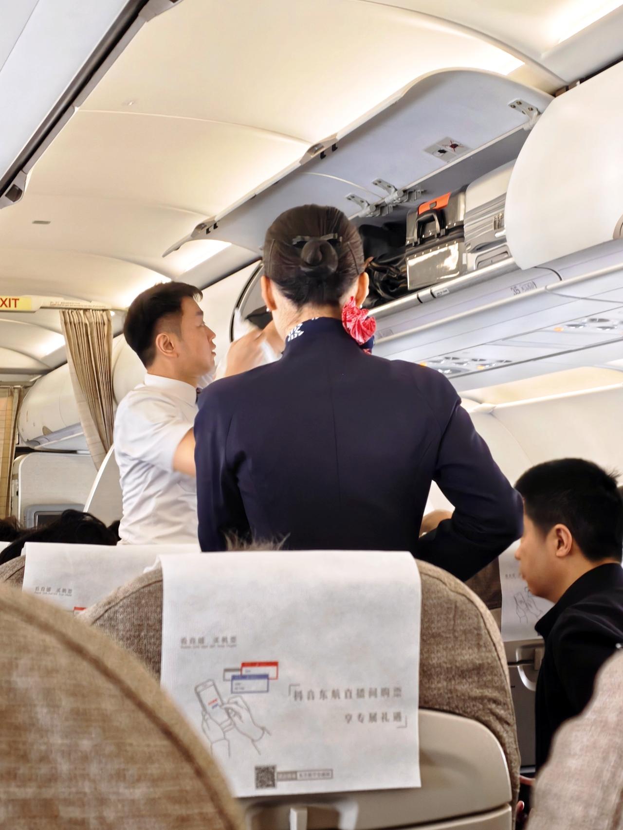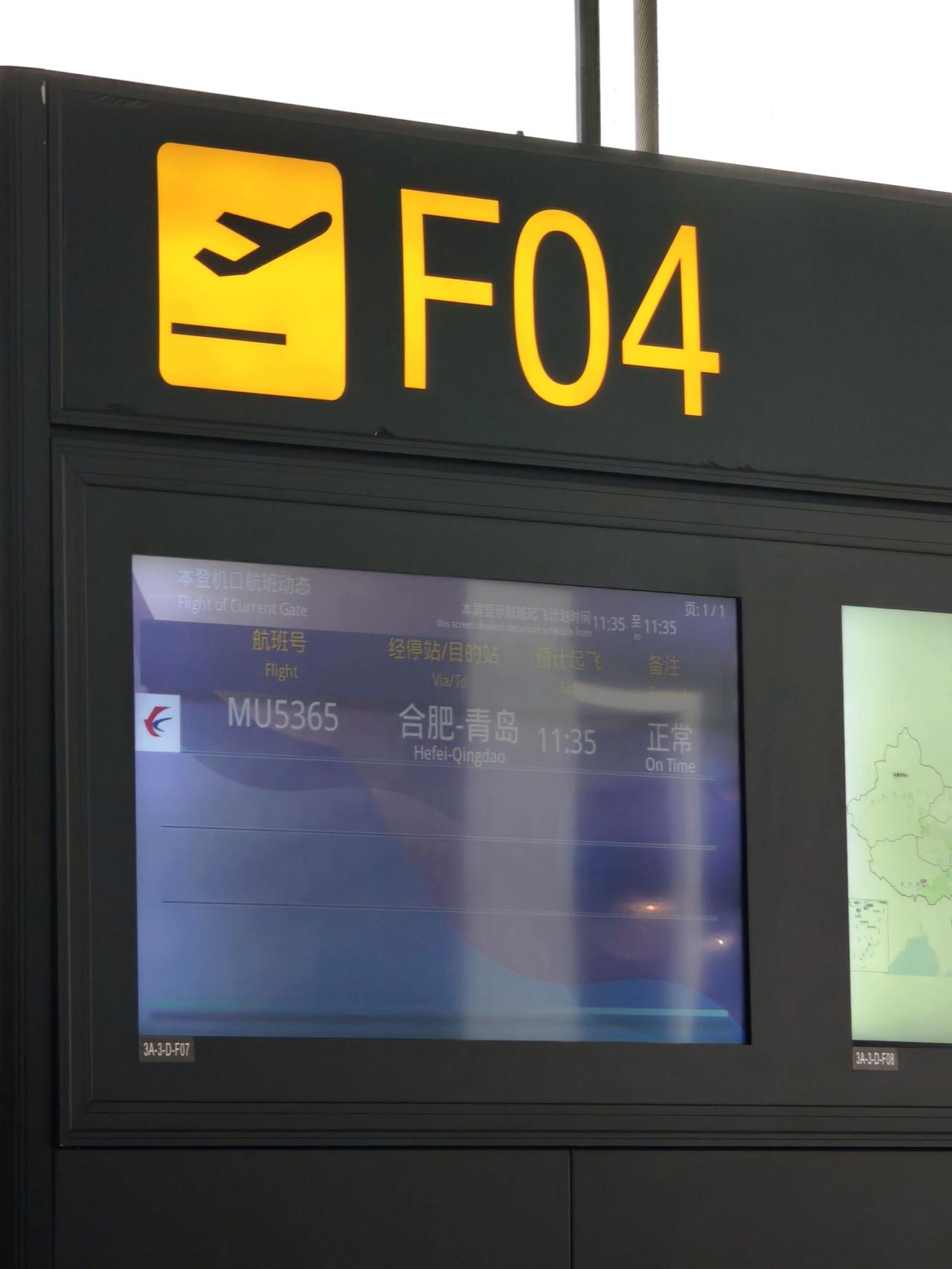 登机口距安检口很近,看了看这个航班的目的地是青岛,到合肥是经停。又是满员的航班,背着这么大的登山包,每次都担心没有地方放置,还好空姐每次也都能找到合适的地方。