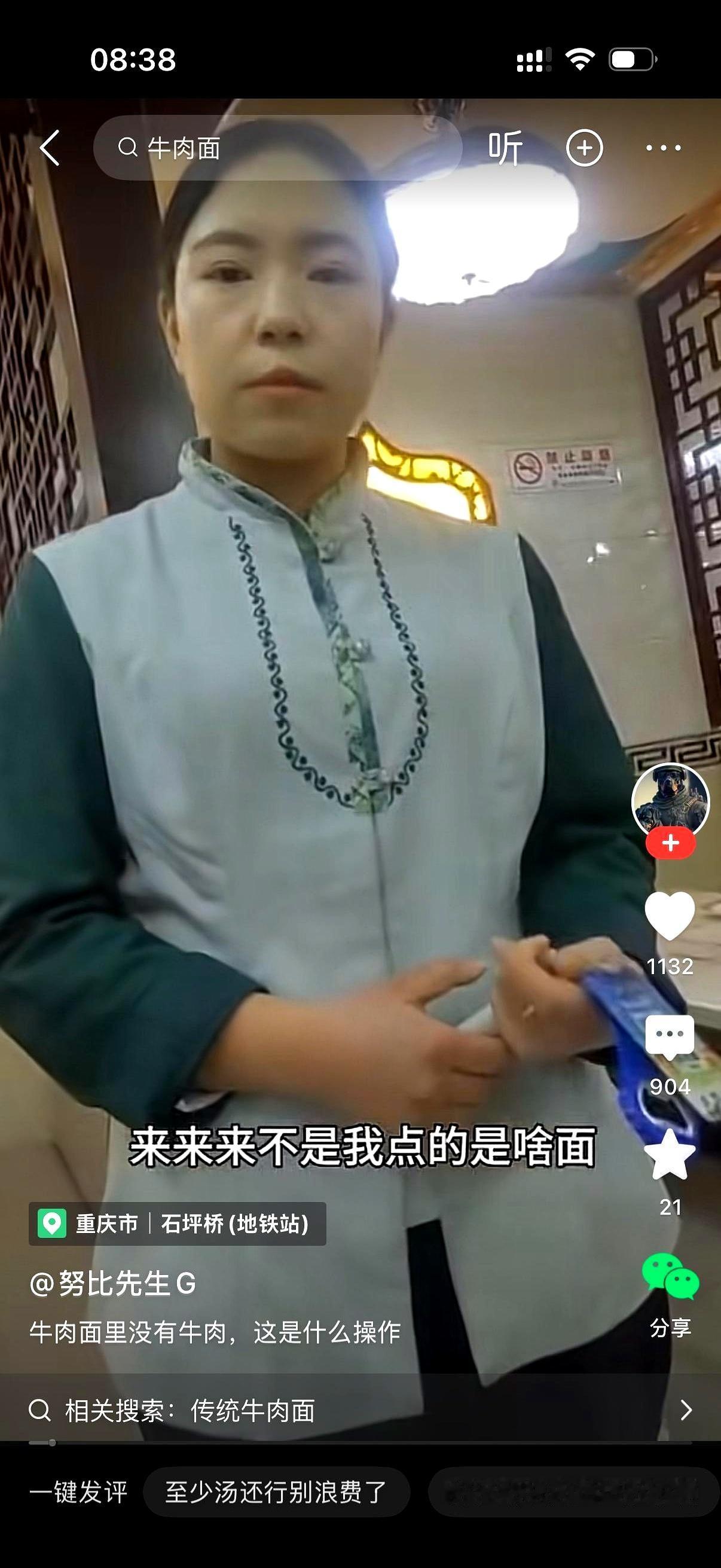 花了三十块钱点两碗牛肉面,结果一块肉都看不见,这你敢信? 那哥们儿就问服务员,我