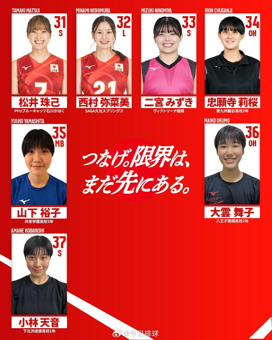 国际排球动态 日本排协今天公布日本女排2026年度37人的集训名单,其中有14名
