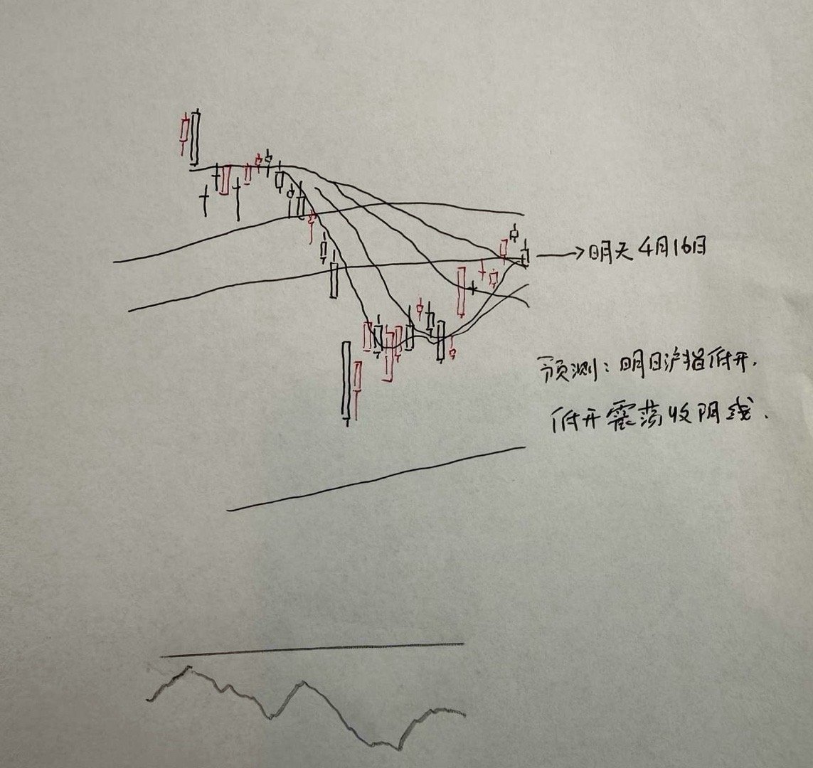 所以,综合以上分析,对于明天市场的走势,我认为市场接下来或者会走出一颗小实体的阴线。那么明天A股到底怎么走?大家请看关于明天走势的手绘预测图: