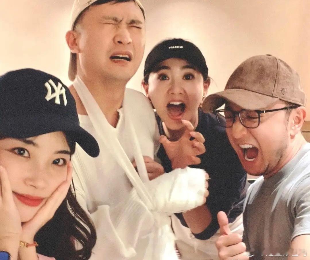 央视主持人杨帆被自家狗咬伤,手上缠着纱布,伤口有点严重。尼格买提、王冰冰和月亮姐
