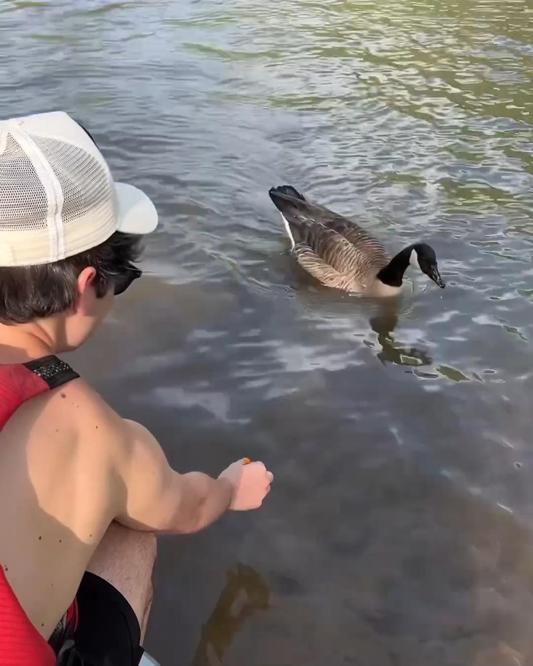 Noah Schnapp 跟肌肉男结伴出行,春游玩水喂鸭子了,生活过得很有情调。
