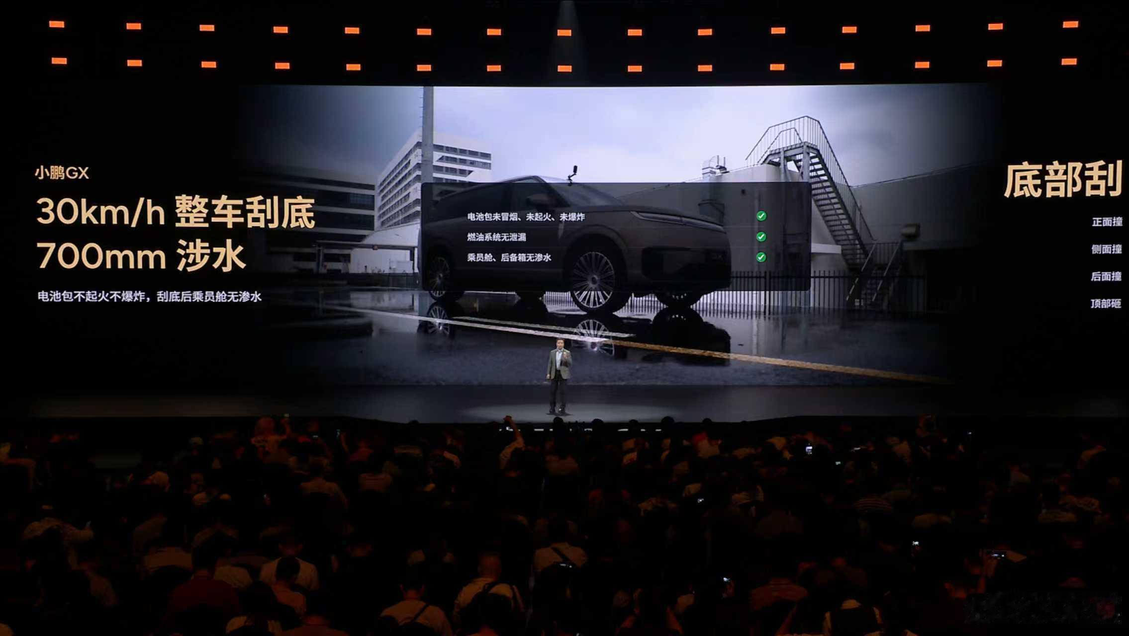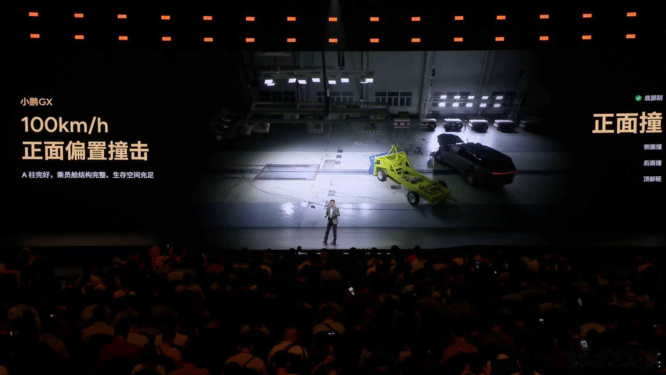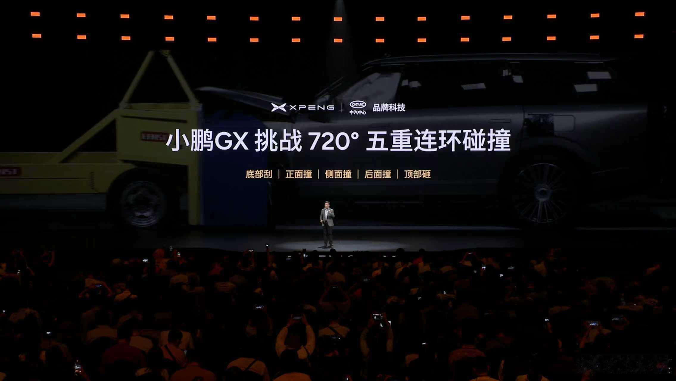 何小鹏称GX上下前后左右都抗撞小鹏GX把四大安全测试场搬到发布会