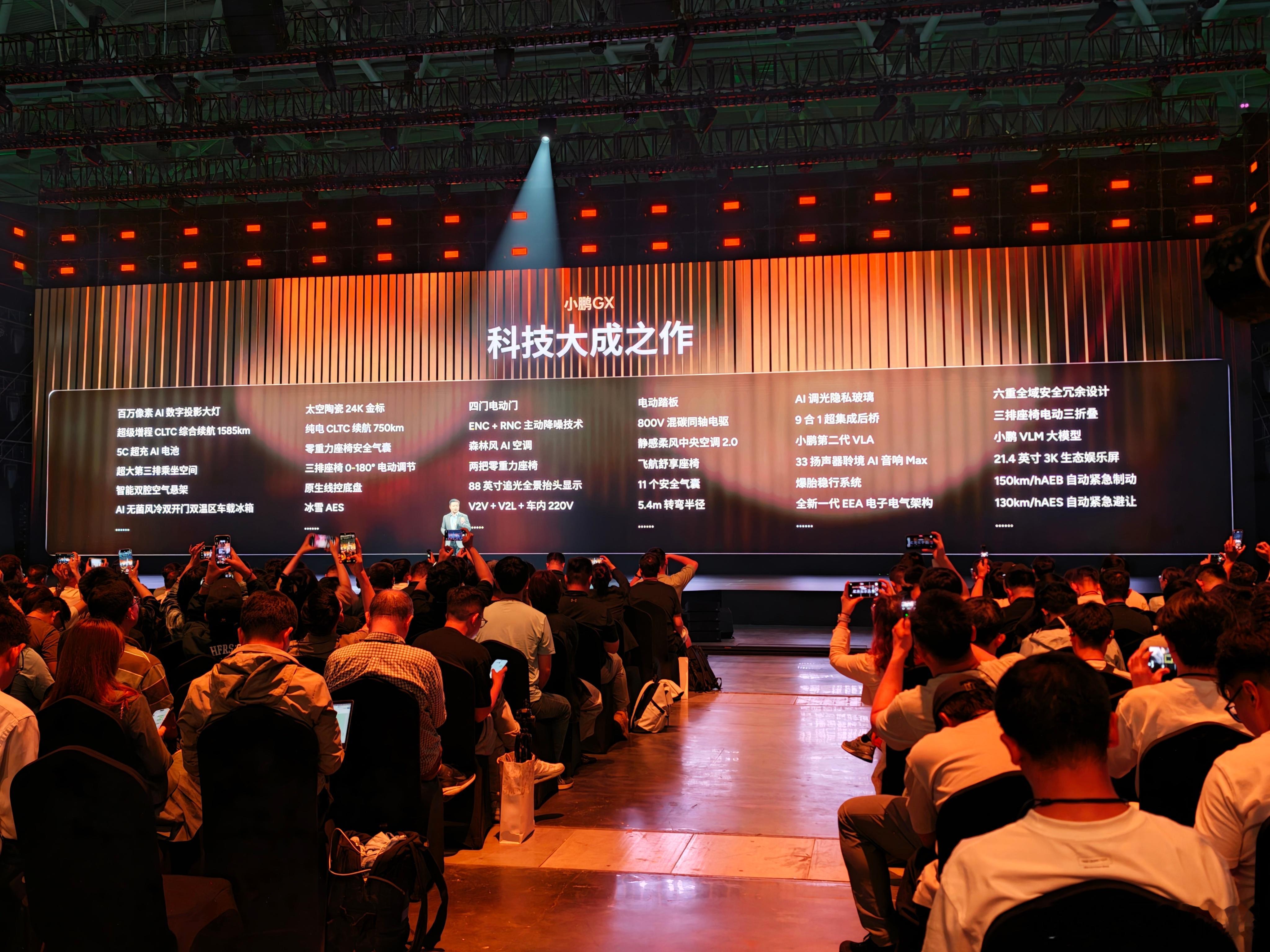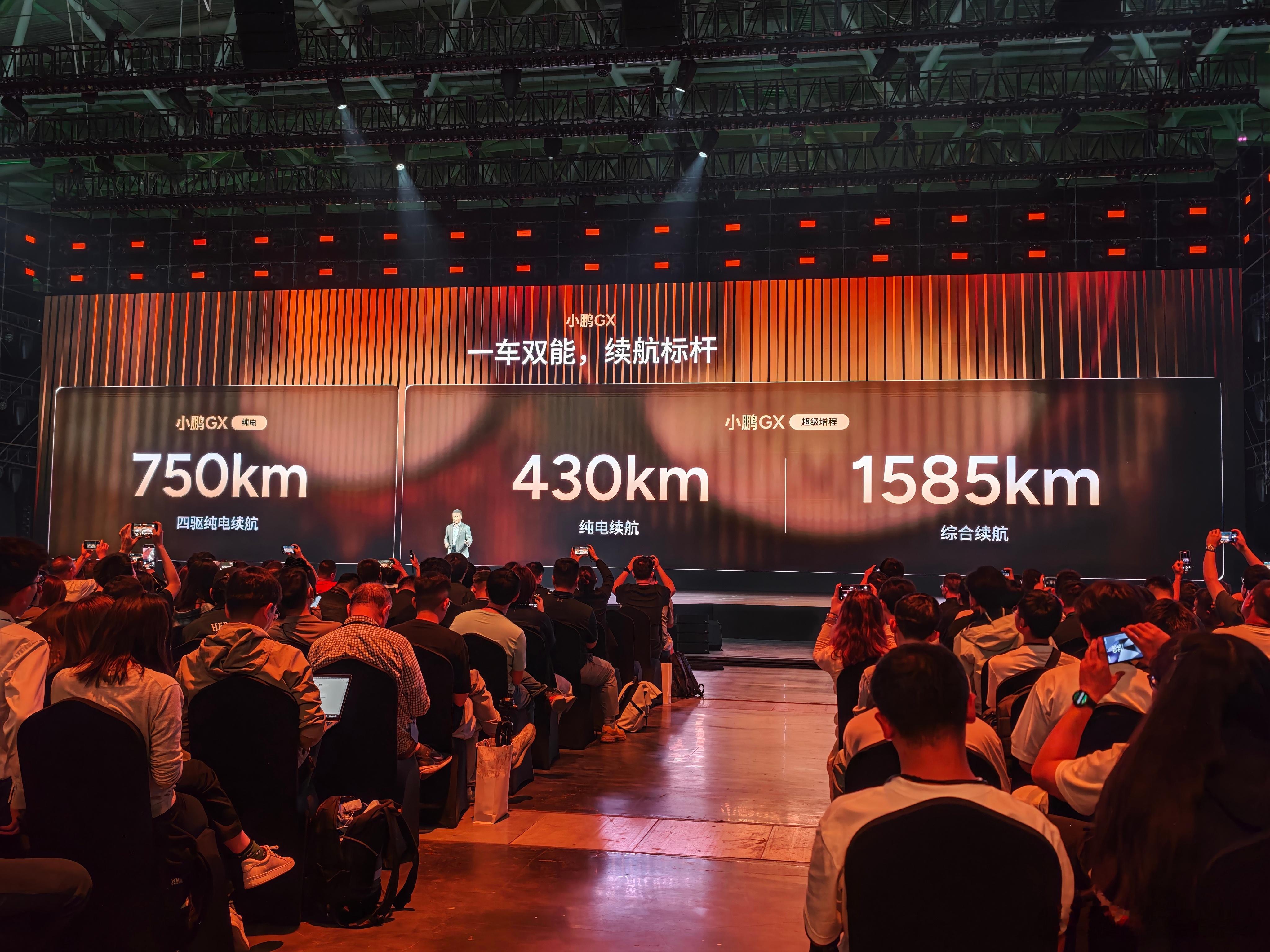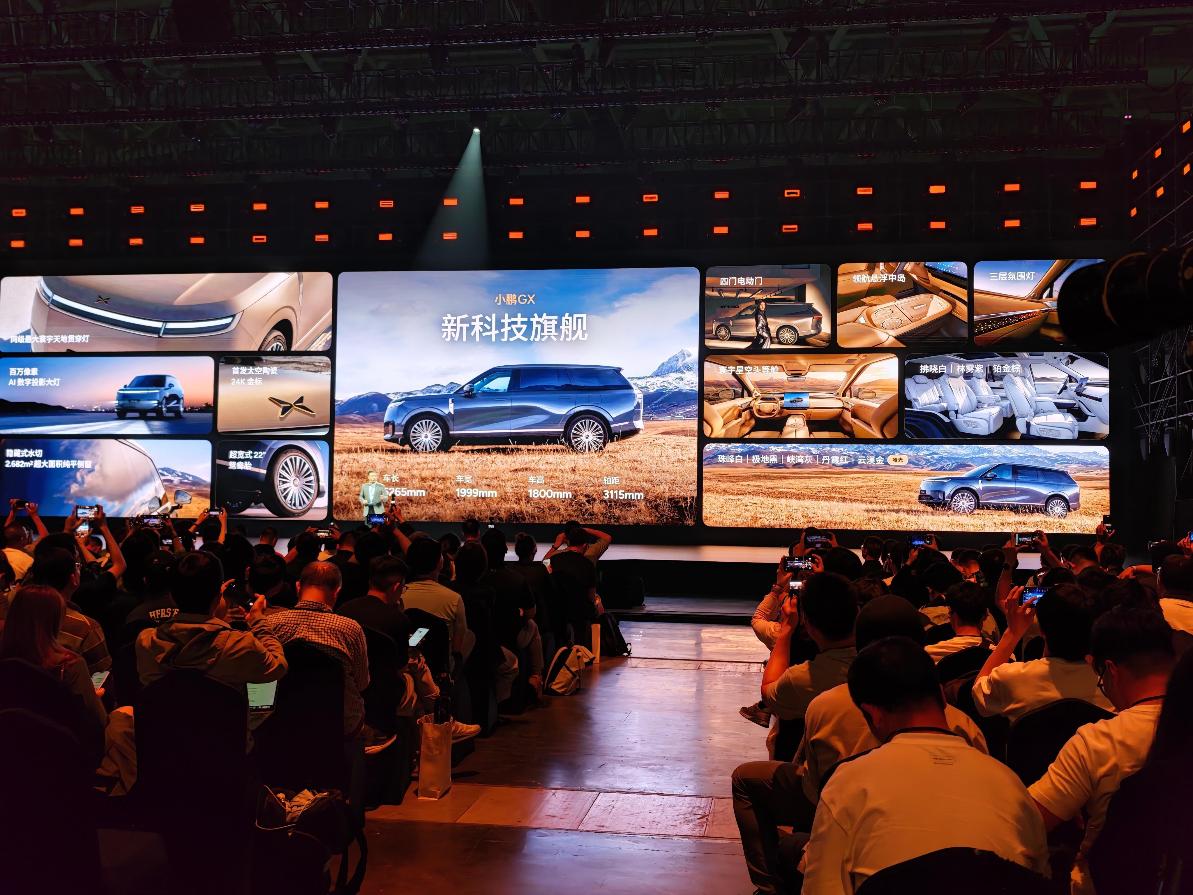 小鹏GX,大六座全尺寸SUV,5265*1999*1800mm,轴距3115mm,纯电四驱续航750km,超级增程版四驱,430km纯电,1585km综合续航。