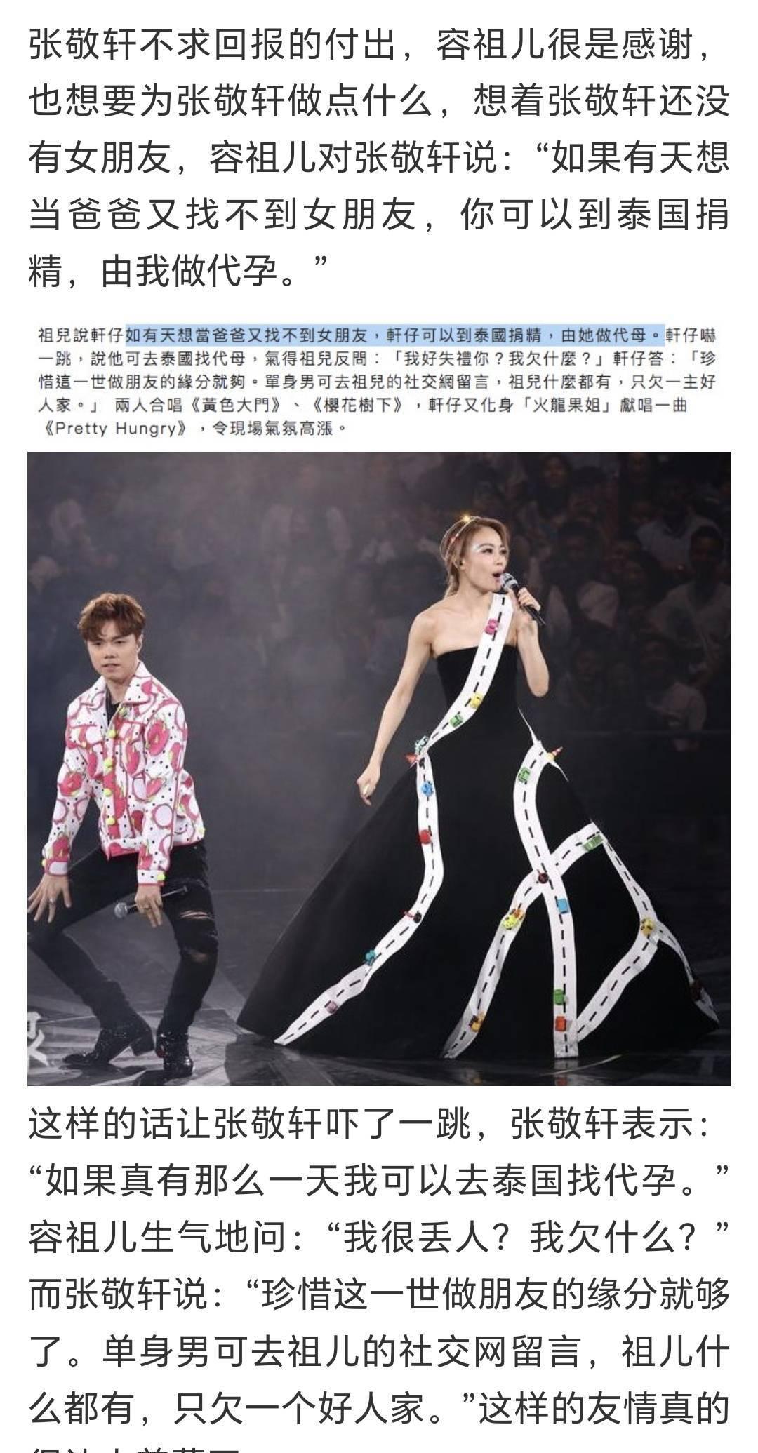 容祖儿表态,尊重支持张敬轩,两个人同属英皇娱乐,并且还是好朋友,容祖儿曾经还表示想要当张敬轩那啥孕母(被提醒这样的行为违法,然后收回了言论),可见关系一直好,不这么表态才奇怪。