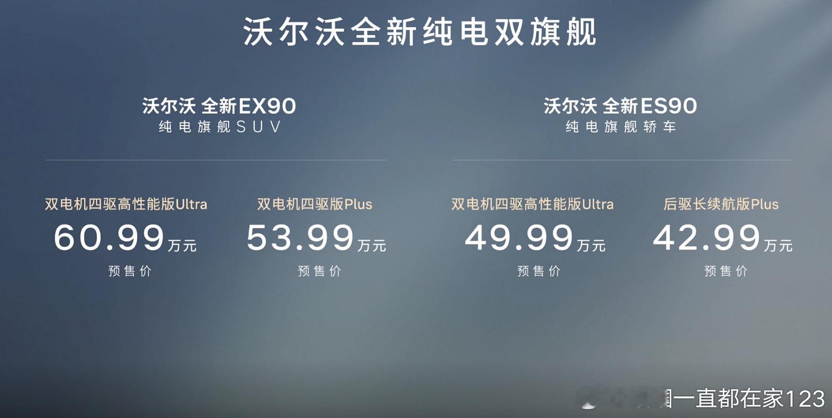 沃尔沃纯电双旗舰开启预售在沃尔沃99岁之际,它也终于推出了自己的纯电双旗舰:SUV旗舰EX90预售53.99-60.99万元三厢旗舰ES90预售42.99-49.99万元。