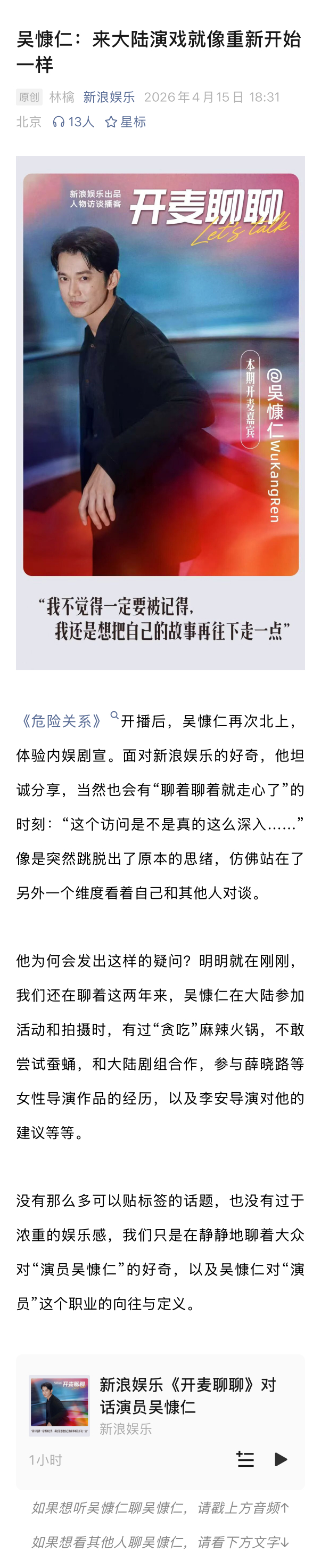 更多内容,请戳新浪娱乐出品人物访谈播客《开麦聊聊》对话演员...↓