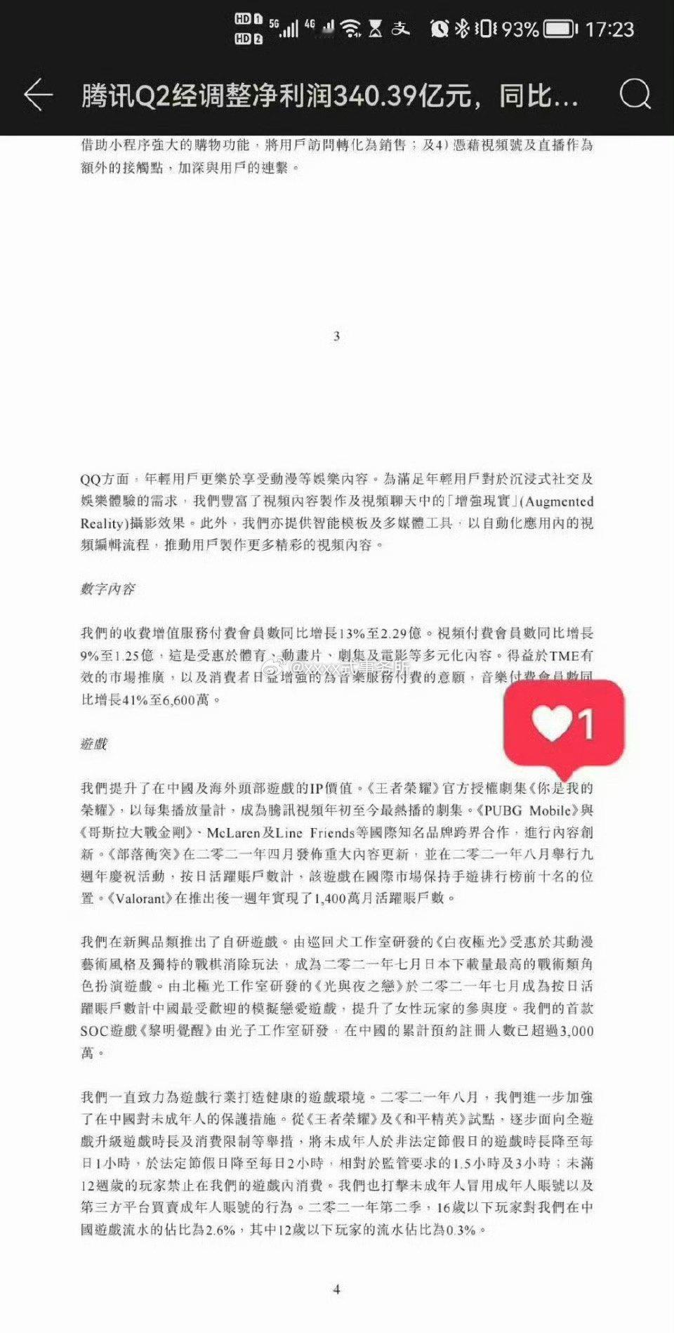 热巴好像上过5次腾讯财报