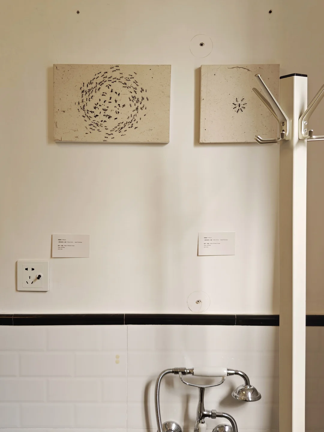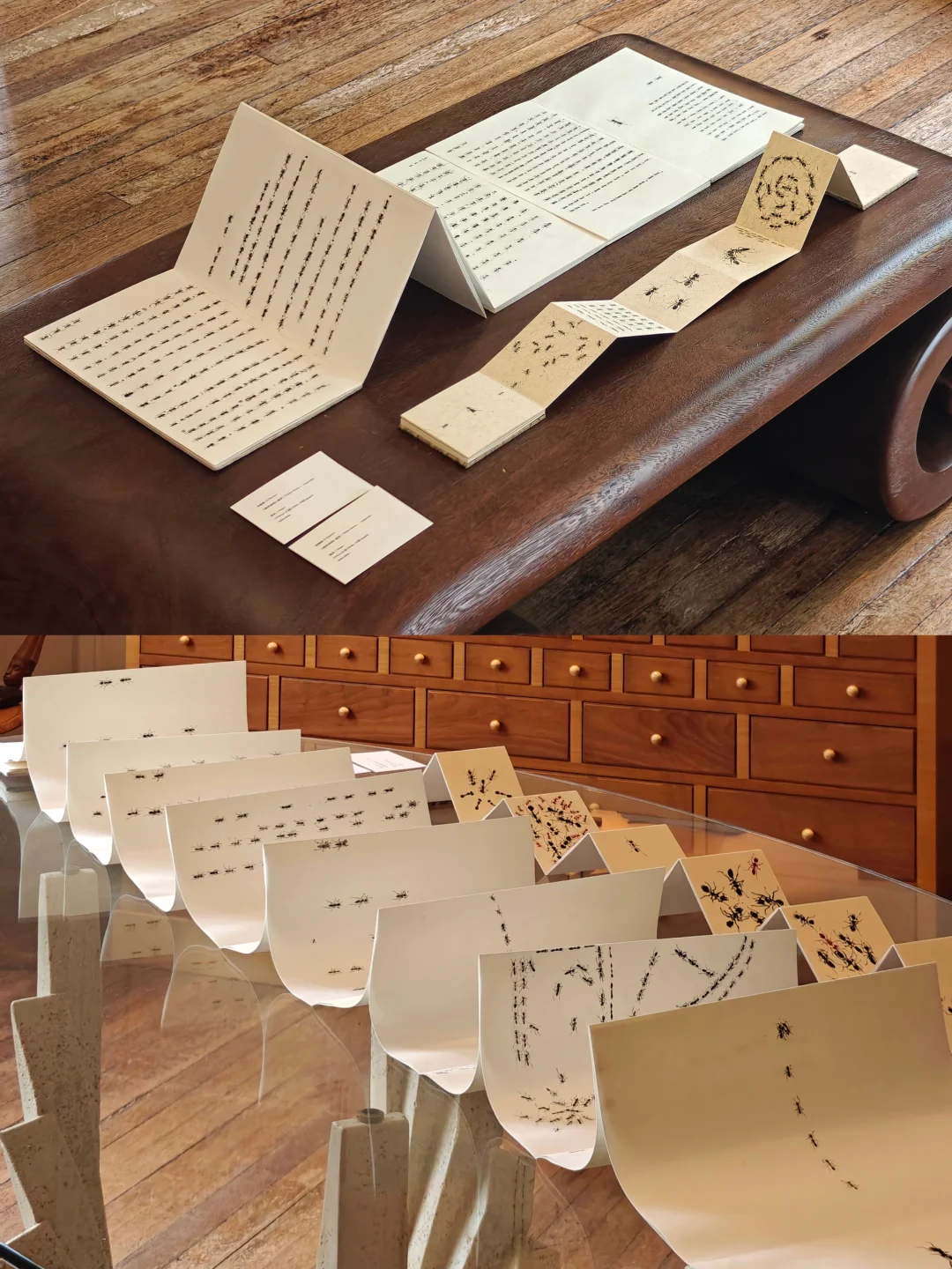 用水墨在宣纸上铺展蚁群的流动轨迹