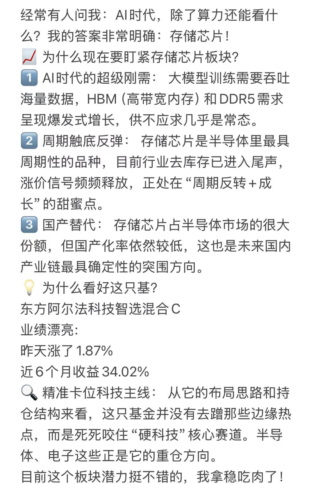 东方阿尔法 东方阿尔法科技智选 存储芯片 理财小白 理财小白 理财 我的理财日记 芯片 电子信息 半导体
