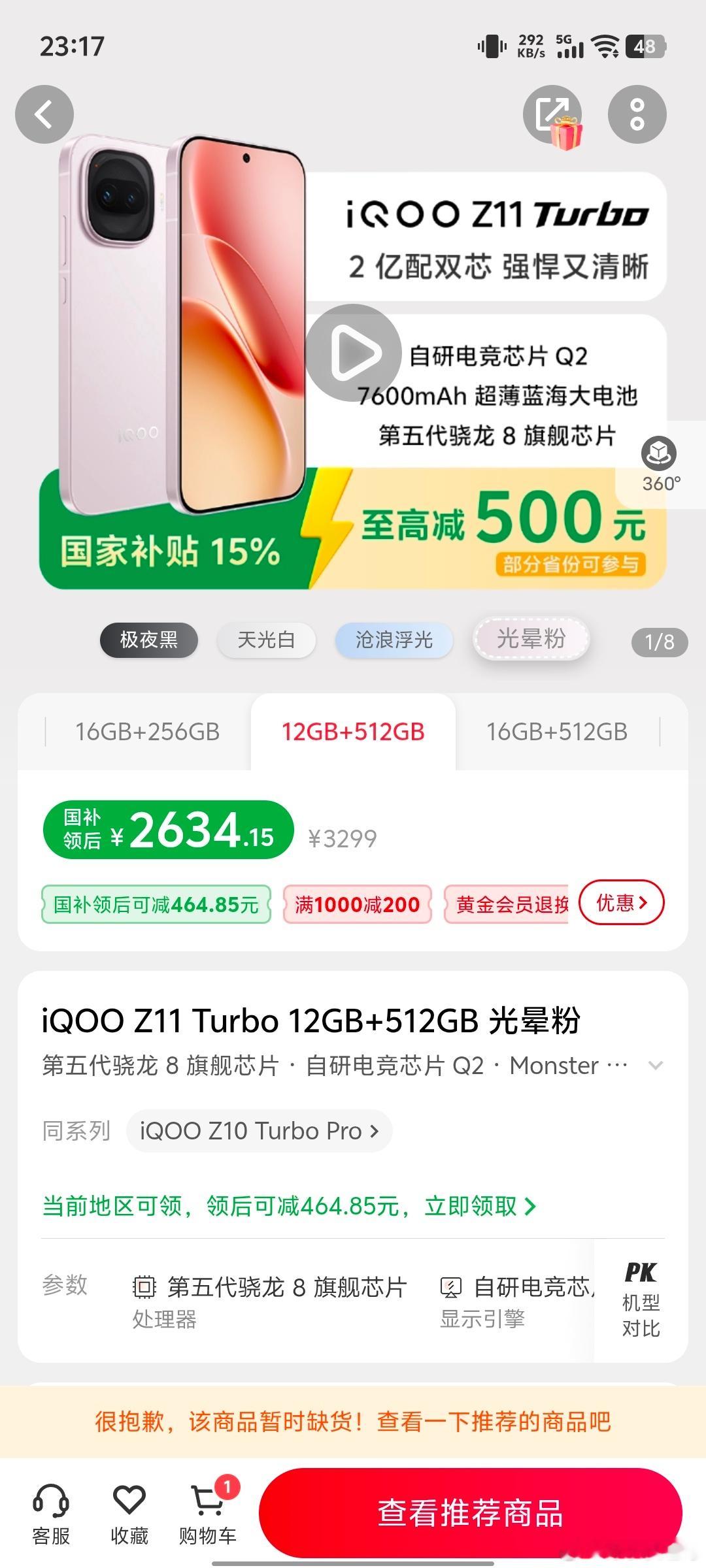 iQOO Z11 Turbo刚刚又去官网看了看,发现最走量的12+512的光晕粉