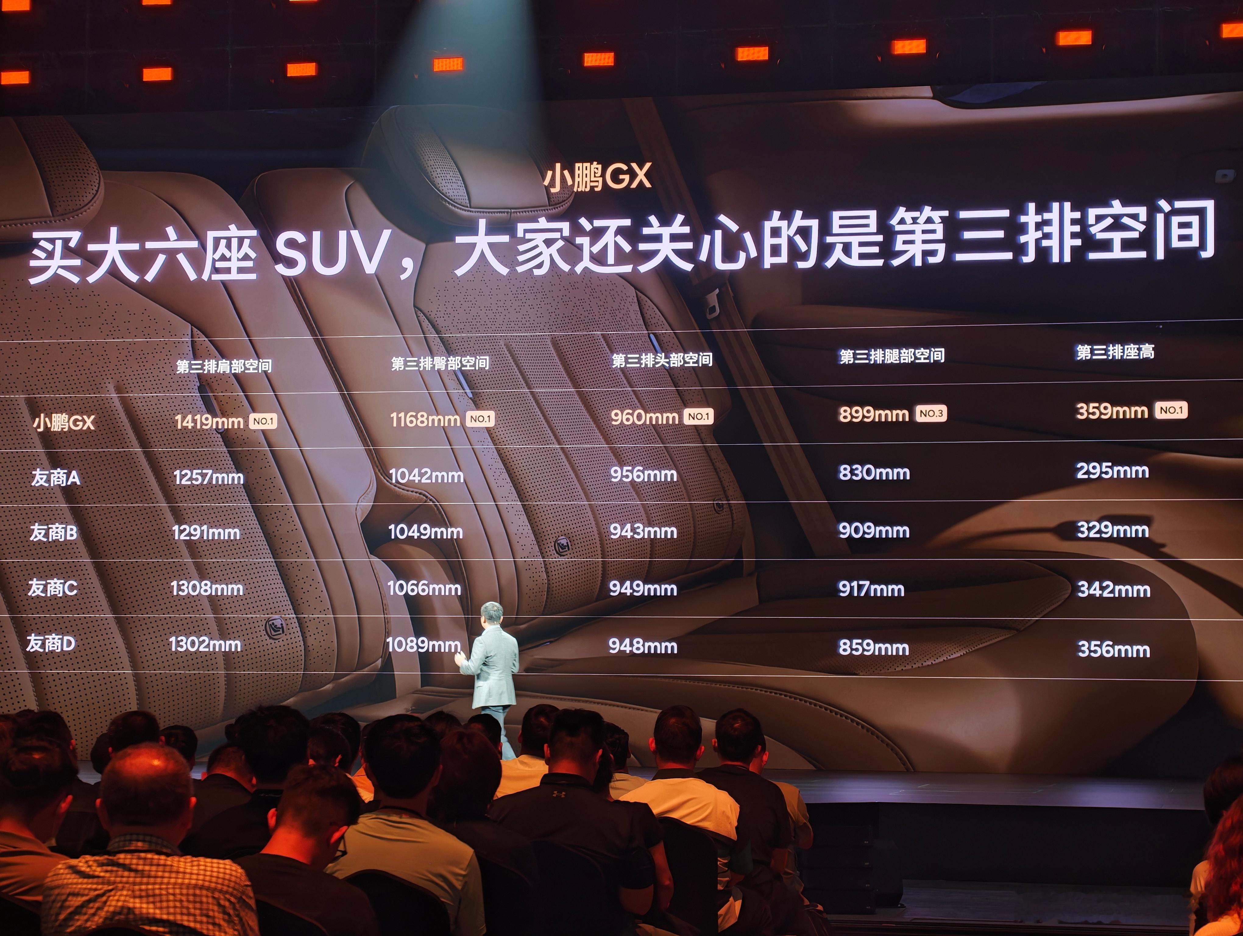 确实,大六座SUV,很多人关心第三排空间,小鹏GX第三排空间五个维度全部第一。