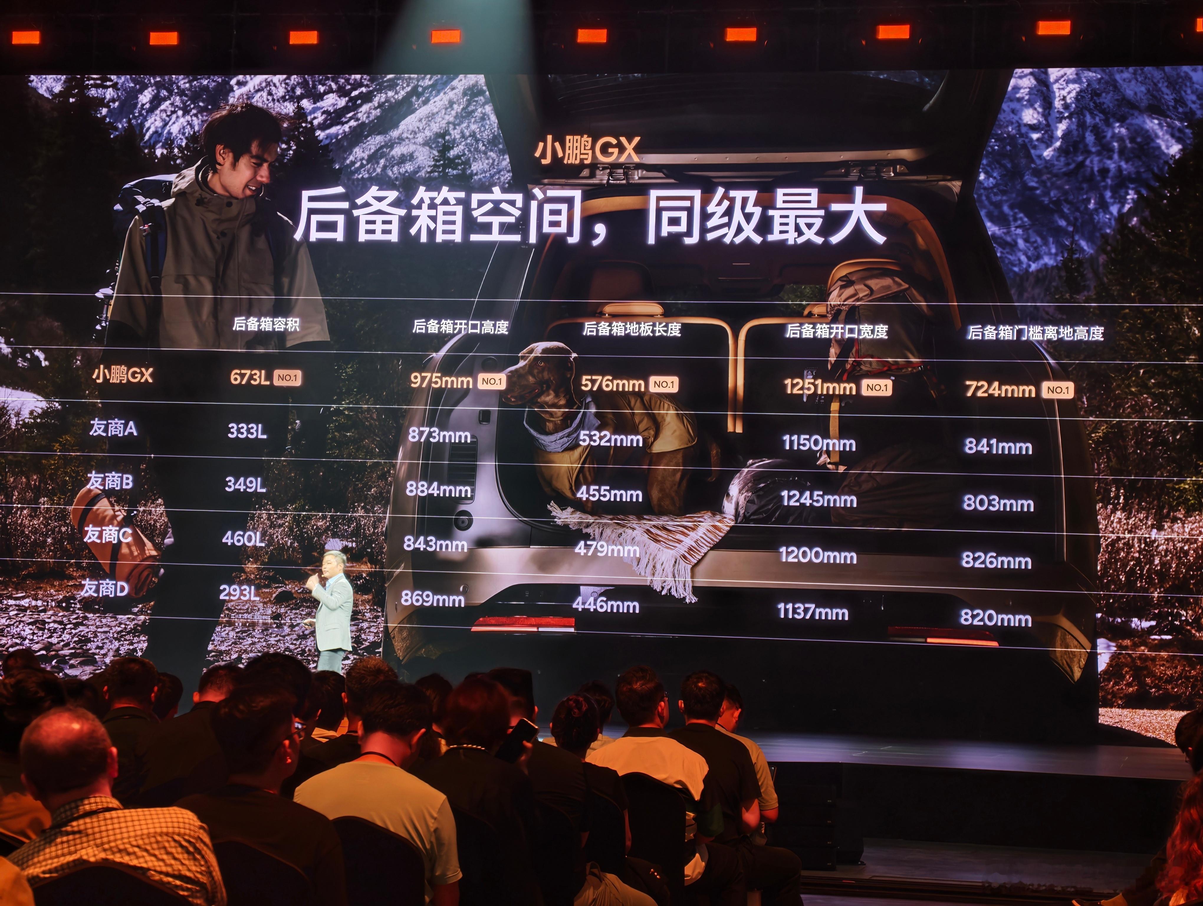 哦,后备箱空间也是同级最大。纯电版本有109L前备箱。新科技旗舰小鹏GX今晚预售央视称小鹏GX为科技大成之作
