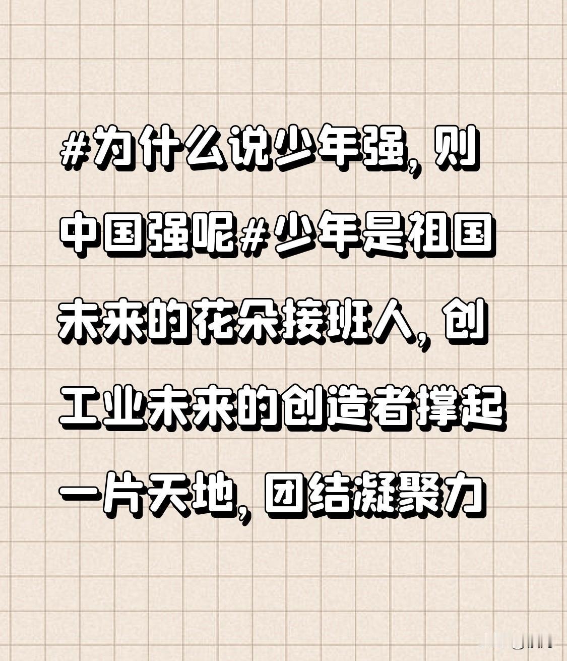 少年强则中国强,这话一点不假。少年是祖国未来的花朵和接班人,他们充满活力与创造力。就像科技领域,很多年轻的科研人员在创新上不断突破,为国家的工业发展添砖加瓦。