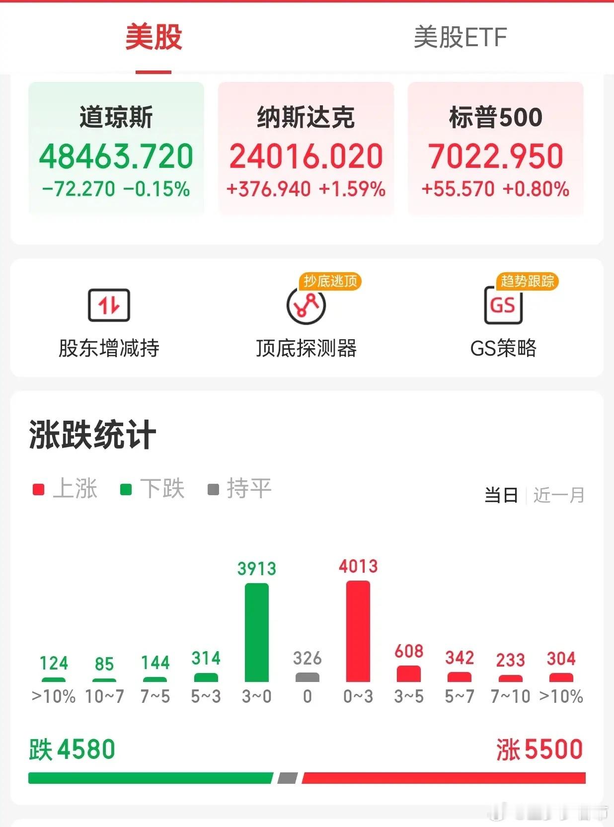 周三(4月15日)美股三大指数收盘涨跌不一,纳指涨1.59%,为连续11个交易日上涨并创收盘新高,这11个交易日累计涨幅超15%,标普500指数涨0.8%创历史新高,道指跌0.15%。大型科技股普涨。加密货币概念、AI软件应用、汽车制造涨幅居前;黄金、美国基建股跌幅居前。