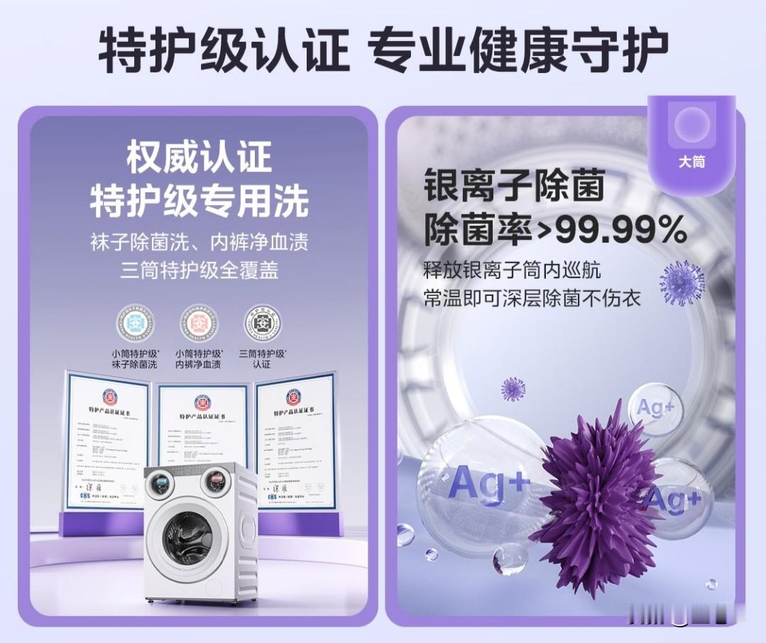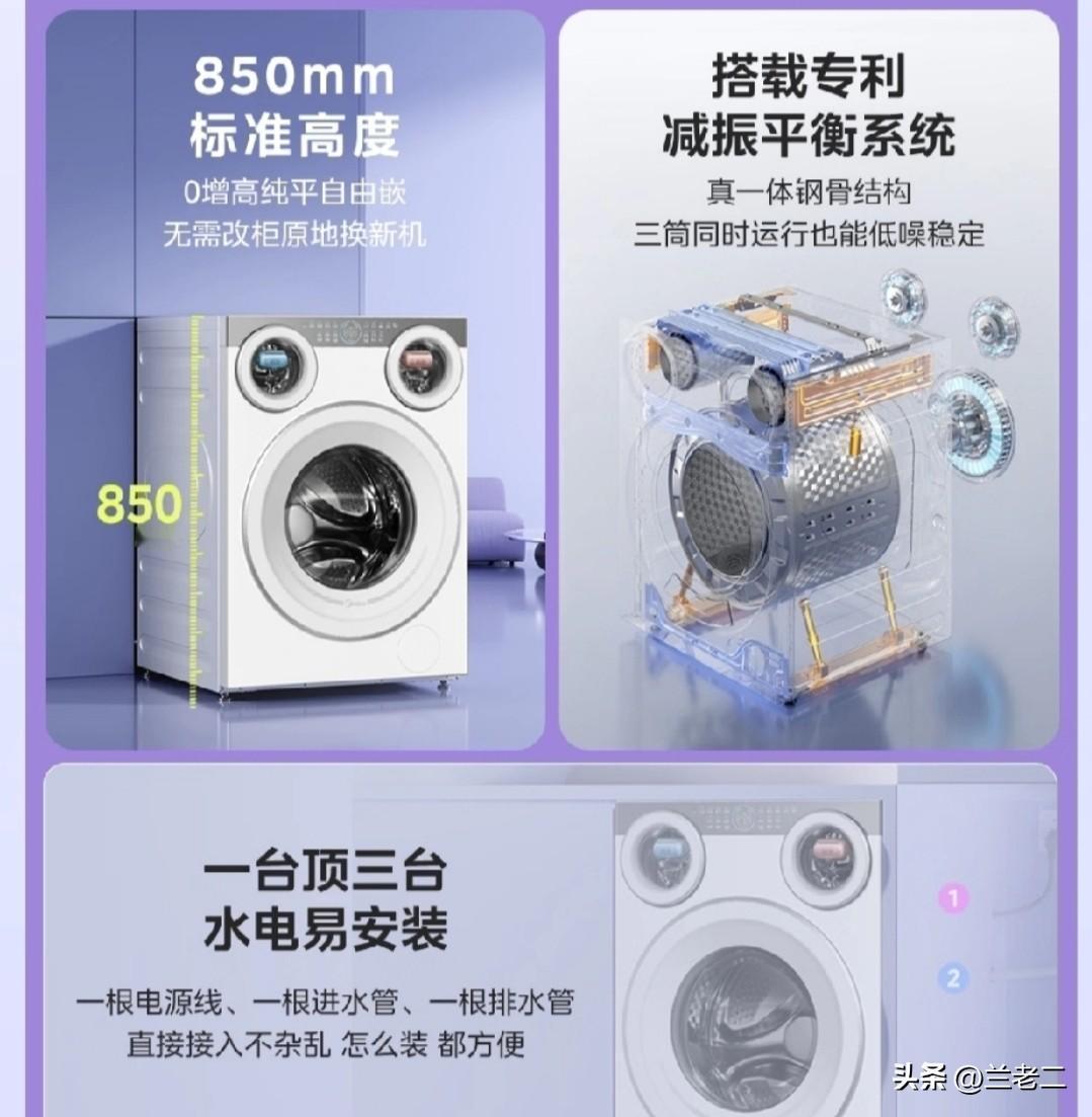 可爱多洗衣机具备三筒分区洗烘功能,内衣和外衣可以分开洗,全家的衣物一次就能处理好,再也不用担心中间会有交叉感染的问题。