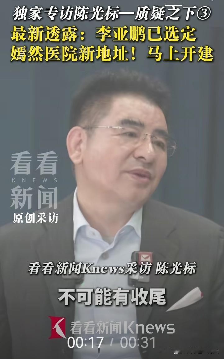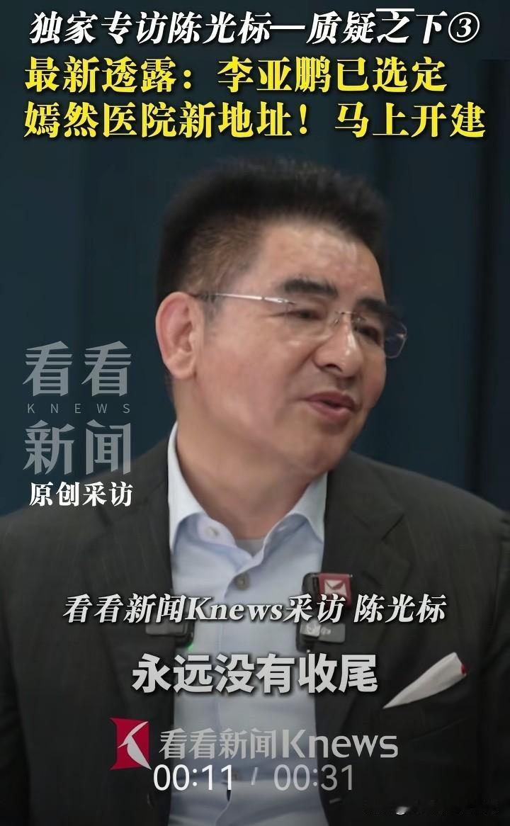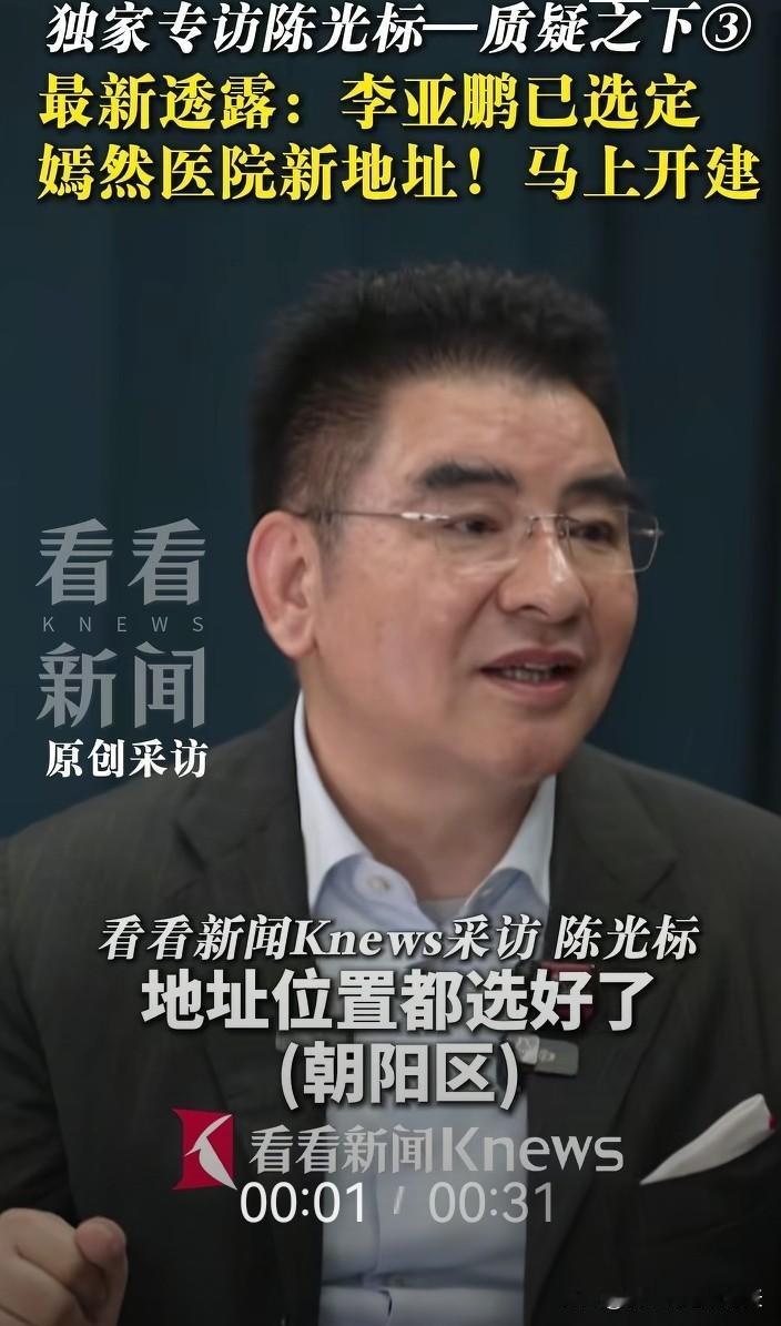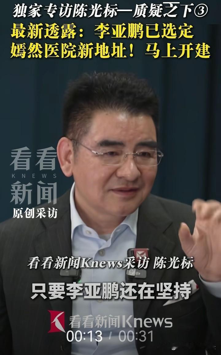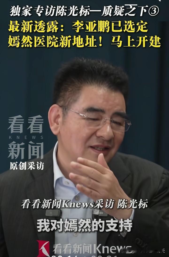 中国首善陈光标在接受看看新闻独家专访时透露:李亚鹏已选好了嫣然儿童医院新址,马上