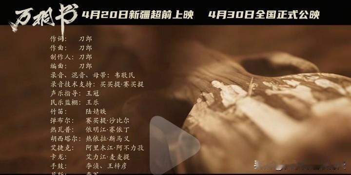 而刀郎为该电影打造的主题曲《命运的赛勒克》正是对万桐书先生的致敬,该电影将于4月20日在新疆首映,而4月30日将在全国正式公映。有了刀郎老师的大力推荐,想必大大小小们到时候必定会去往各大影院捧场助力的。