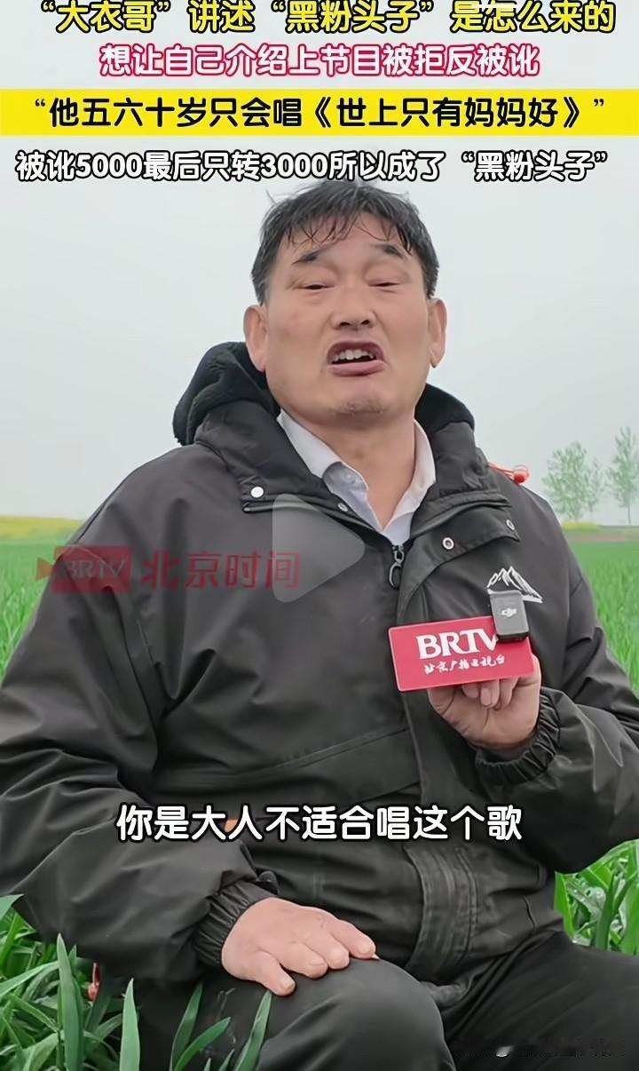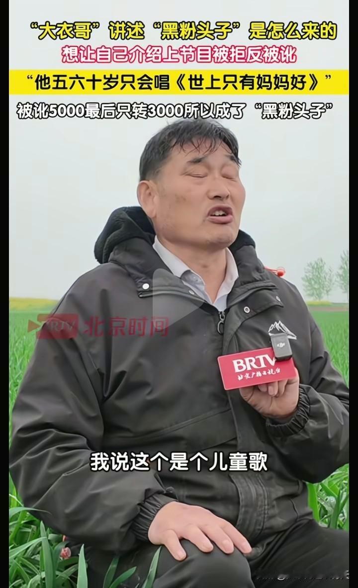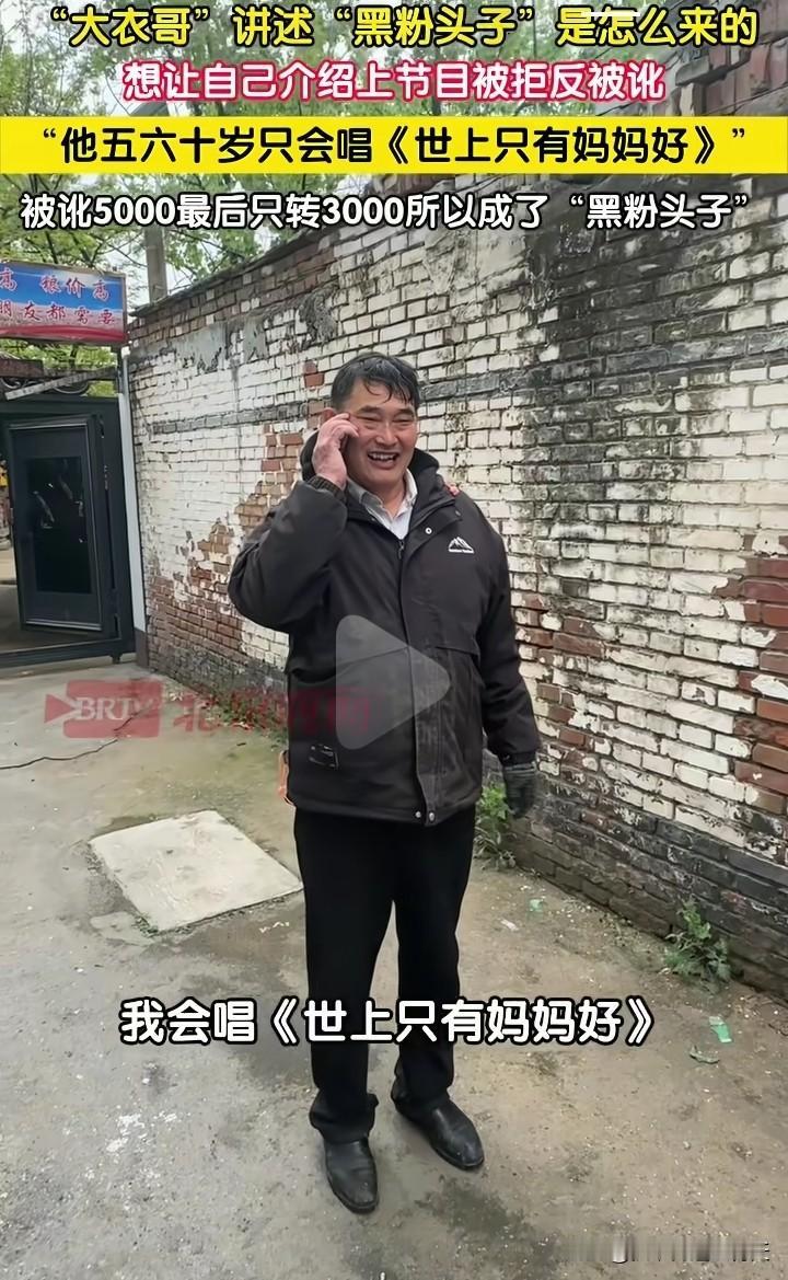原来这个黑粉(一个五六十岁的老头)要大衣哥朱之文给介绍自己上节目,大衣哥问他会唱什么歌,他答道只会唱《世上只有妈妈好》,大衣哥说这是儿歌,你一个五六十岁的人不适合[捂脸]