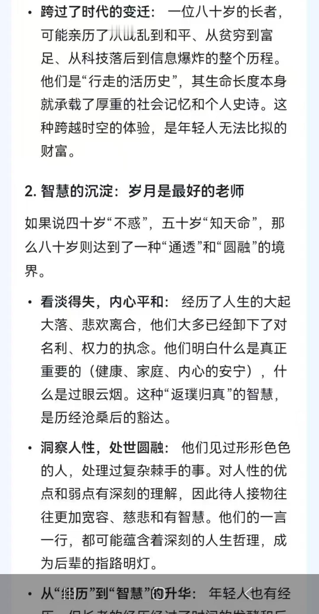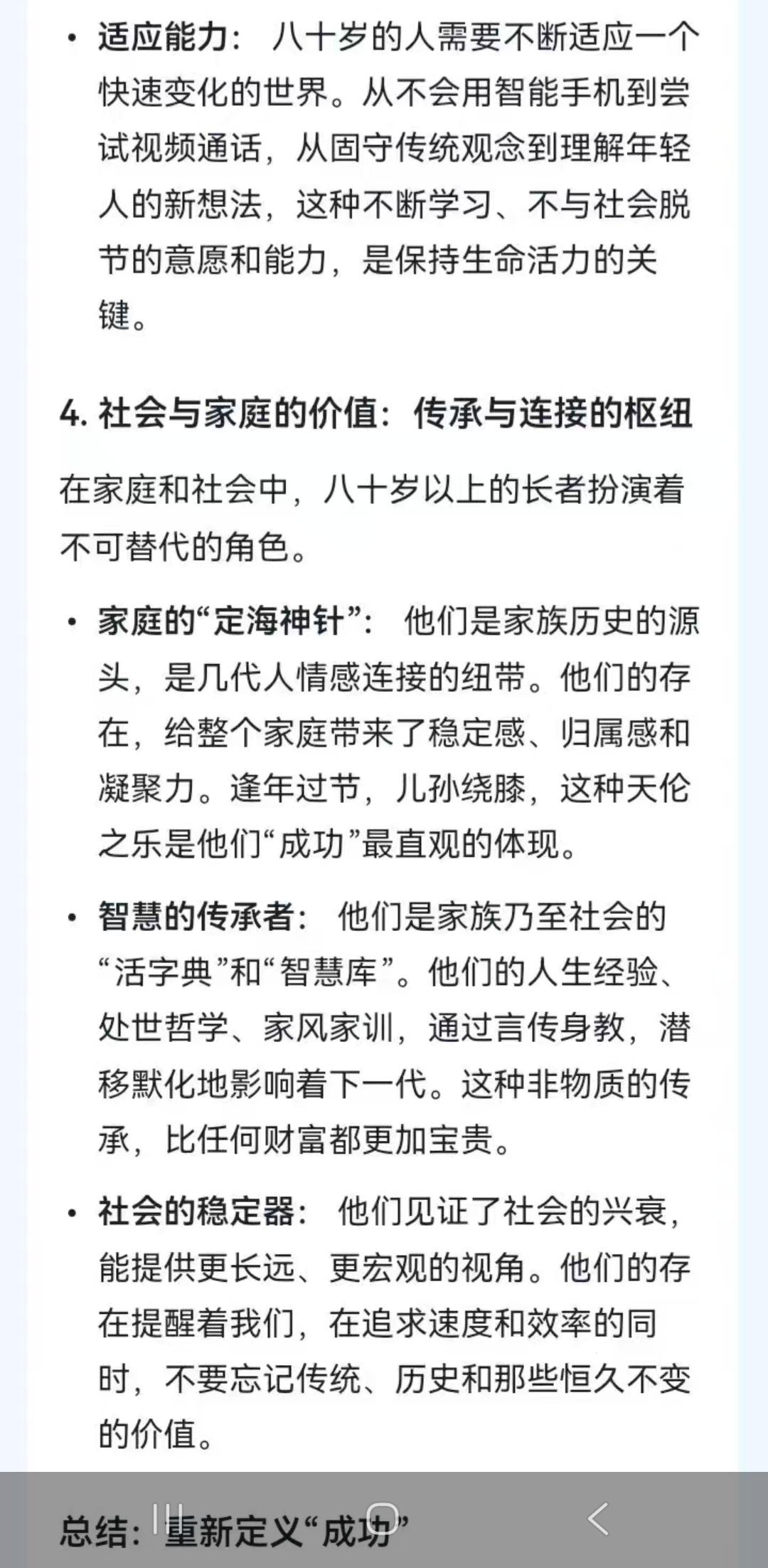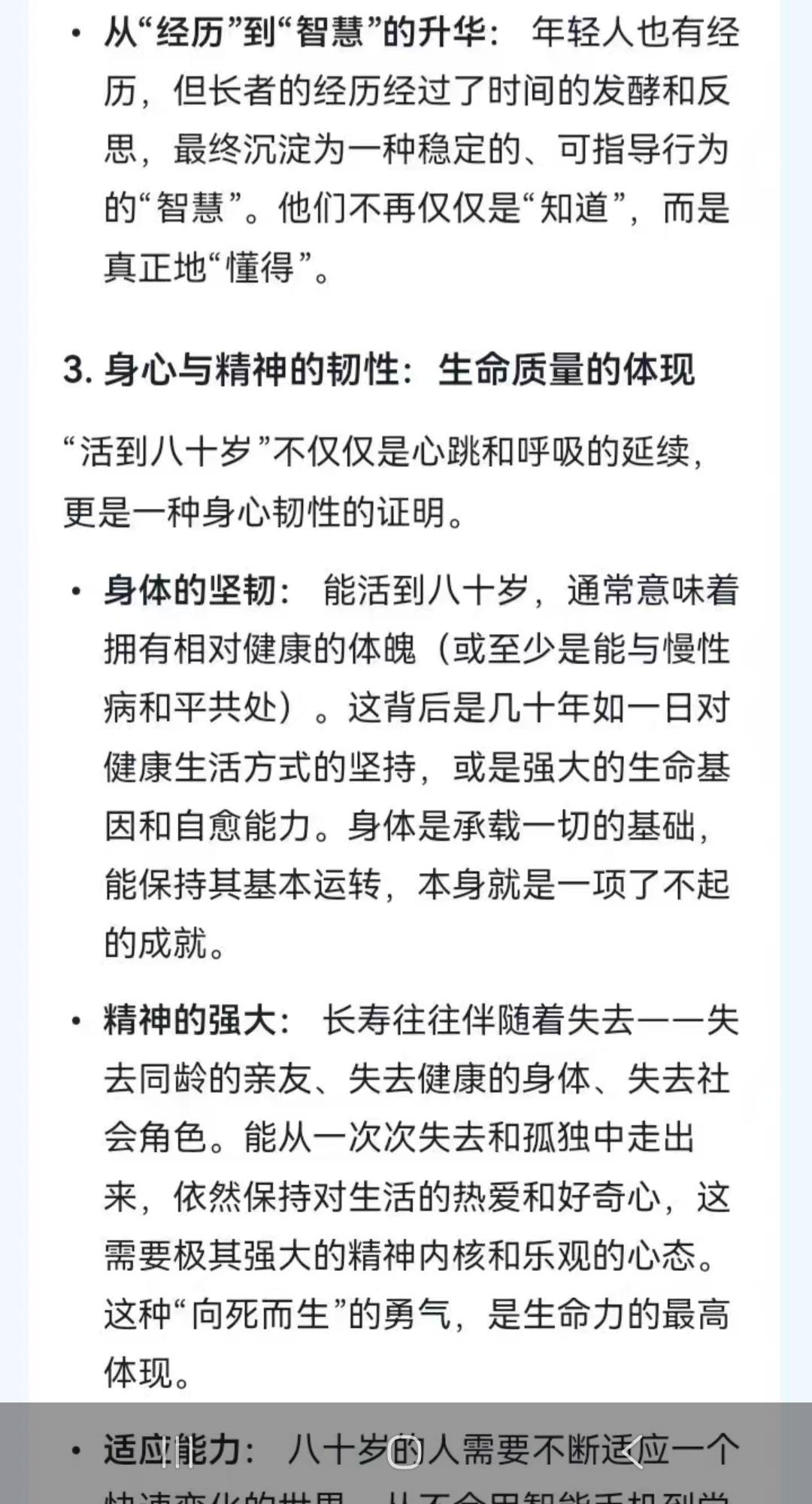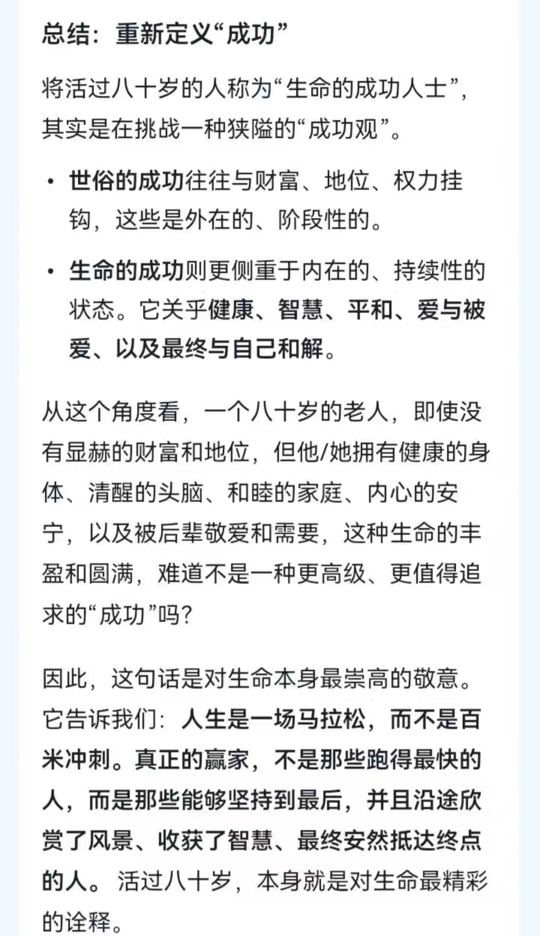 文章说:活过八十岁是对生命长度、质量、智慧和韧性的多重敬意!感觉此言真乃智慧清醒之语。