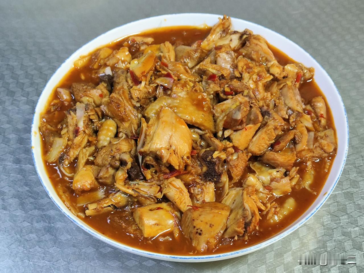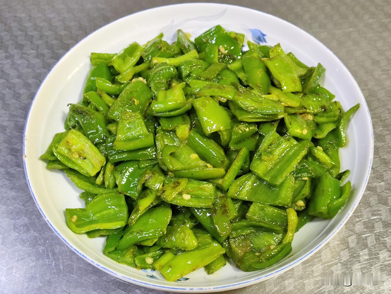 四月十五日午餐,我做了两菜一汤一主食。第一道是姜汁热窝鸡;第二道是素炒青椒;汤是