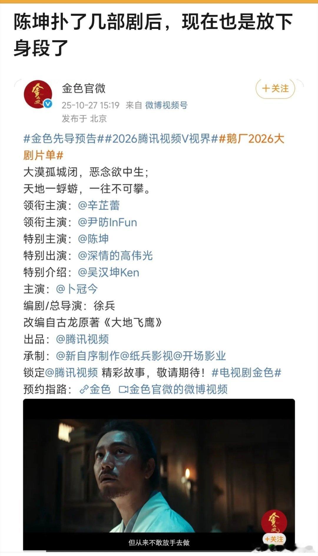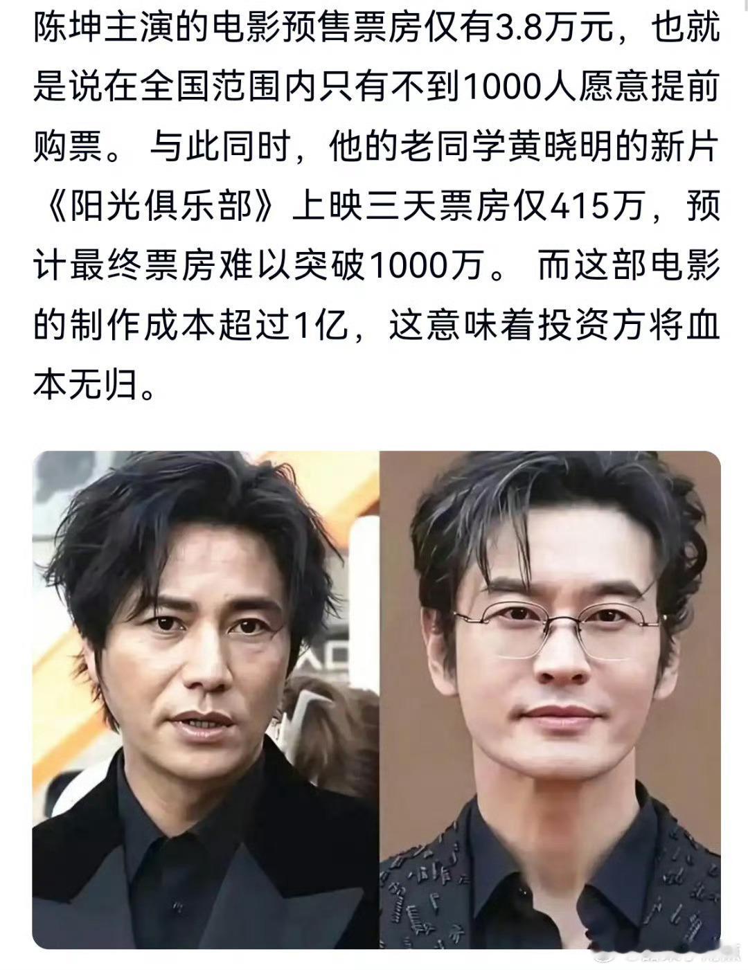 电影1840陈坤肖央双人海报新电影《1840》刚出海报,陈坤一出场,评论区先凉半截。这些年真的数不过来:《天盛长歌》扑、《风起陇西》扑,电影《侍神令》大扑,上一部《旁观者》首日票房才50万。从“收视毒药”被叫到“扑扑坤”,同一批中生里,几乎是唯一没拿得出手电影实绩和奖项的那位。网友都在问:旗下艺人拼命赚钱,就是为了托着他一直扑吗?《侍神令》的教训还没吃够?这次搭档肖央,观众缘已经快被耗光了。你觉得《1840》能救“扑扑坤”,还是继续扑?电影1840官宣
