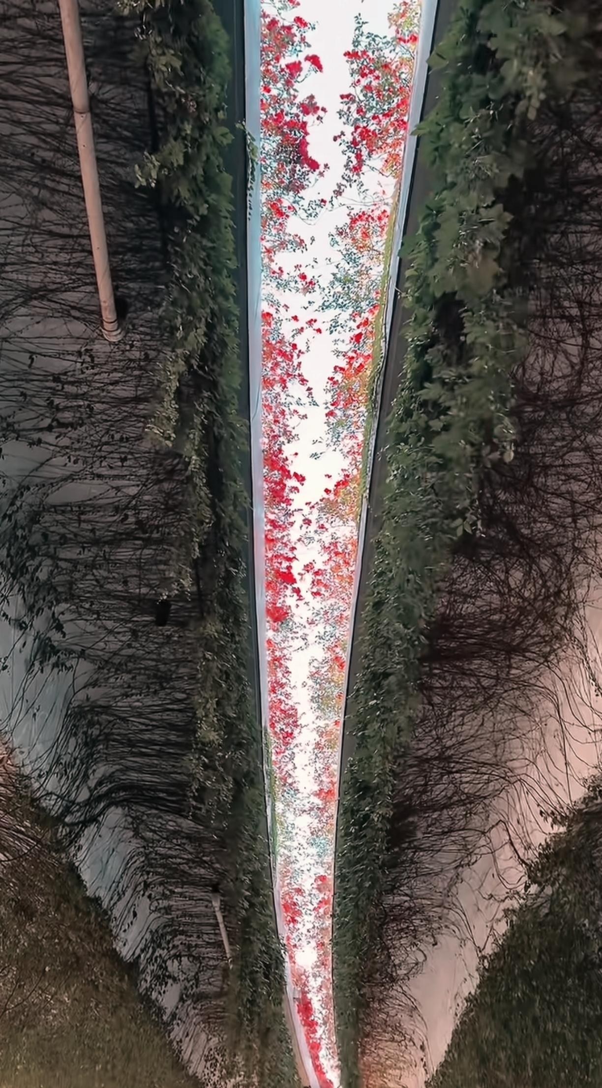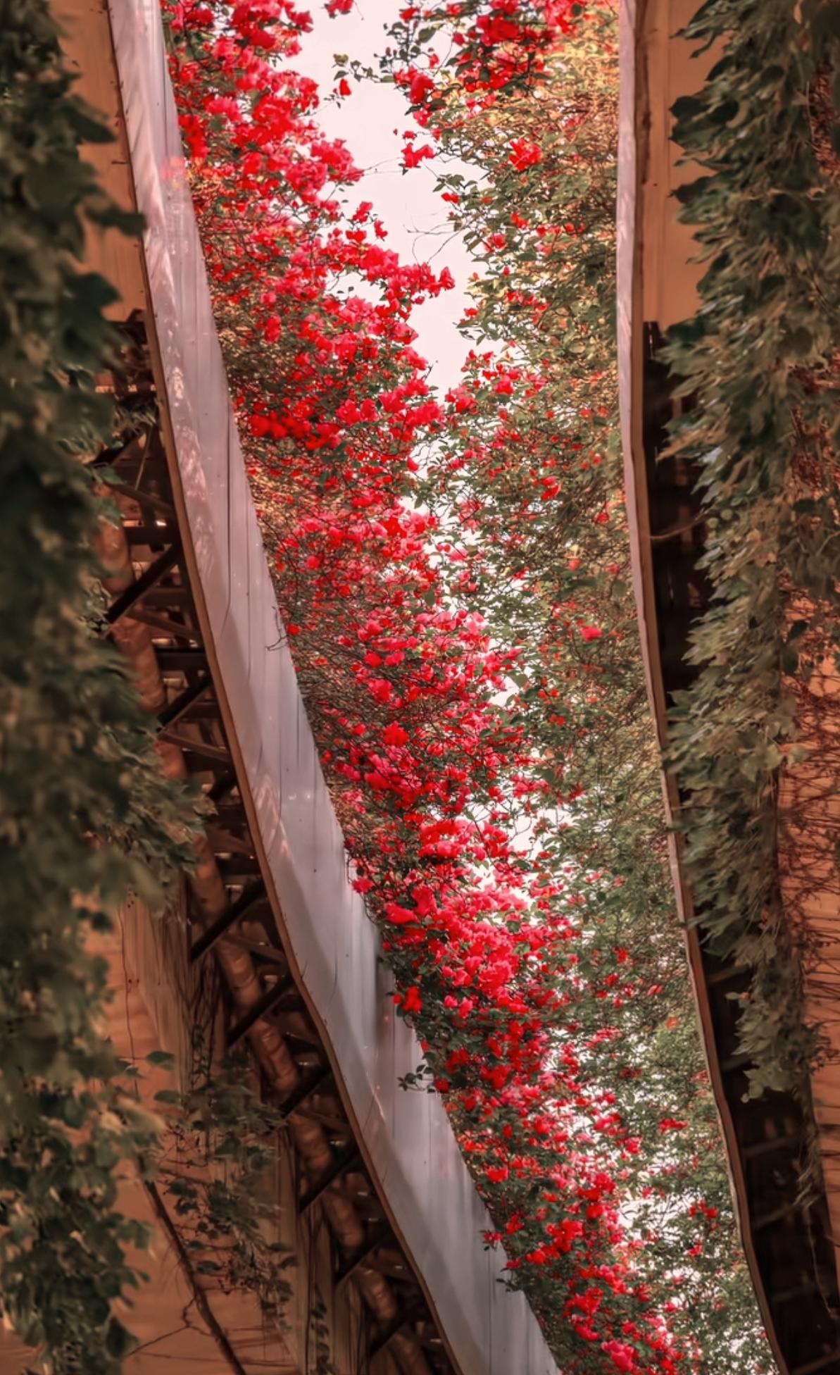 太惊艳了,一男子路过桥下,一抬头看见满眼繁花,惊讶得口露国粹。网友说:“我还纳闷呢,谁能画这么长的画?”第一幅很适合做屏保,国色天香的浪漫!