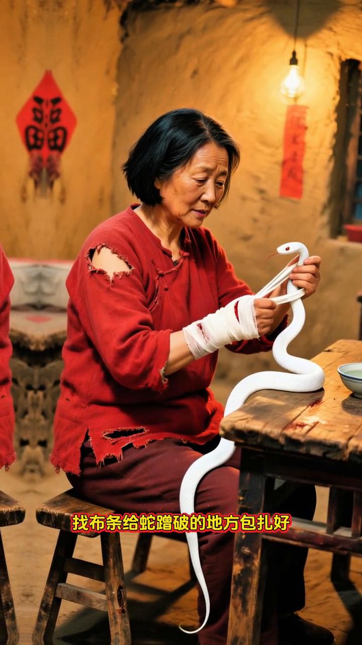 二愣子心里也发怵,连夜爬起来,揣着小蛇就往野外跑,把小蛇放回了原来的石窝里。可他媳妇压根睡不着,总放心不下这条小蛇,怕它再被坏人吃掉。连夜摸黑又跑到石窝,把小蛇轻轻捧回了家,找布条给蛇蹭破的地方包扎好,放在仓房里细心养着。等小蛇伤养的妥妥当当,媳妇又专门把它送到二龙山的深山里放生,看着蛇钻进草丛才安心回家。