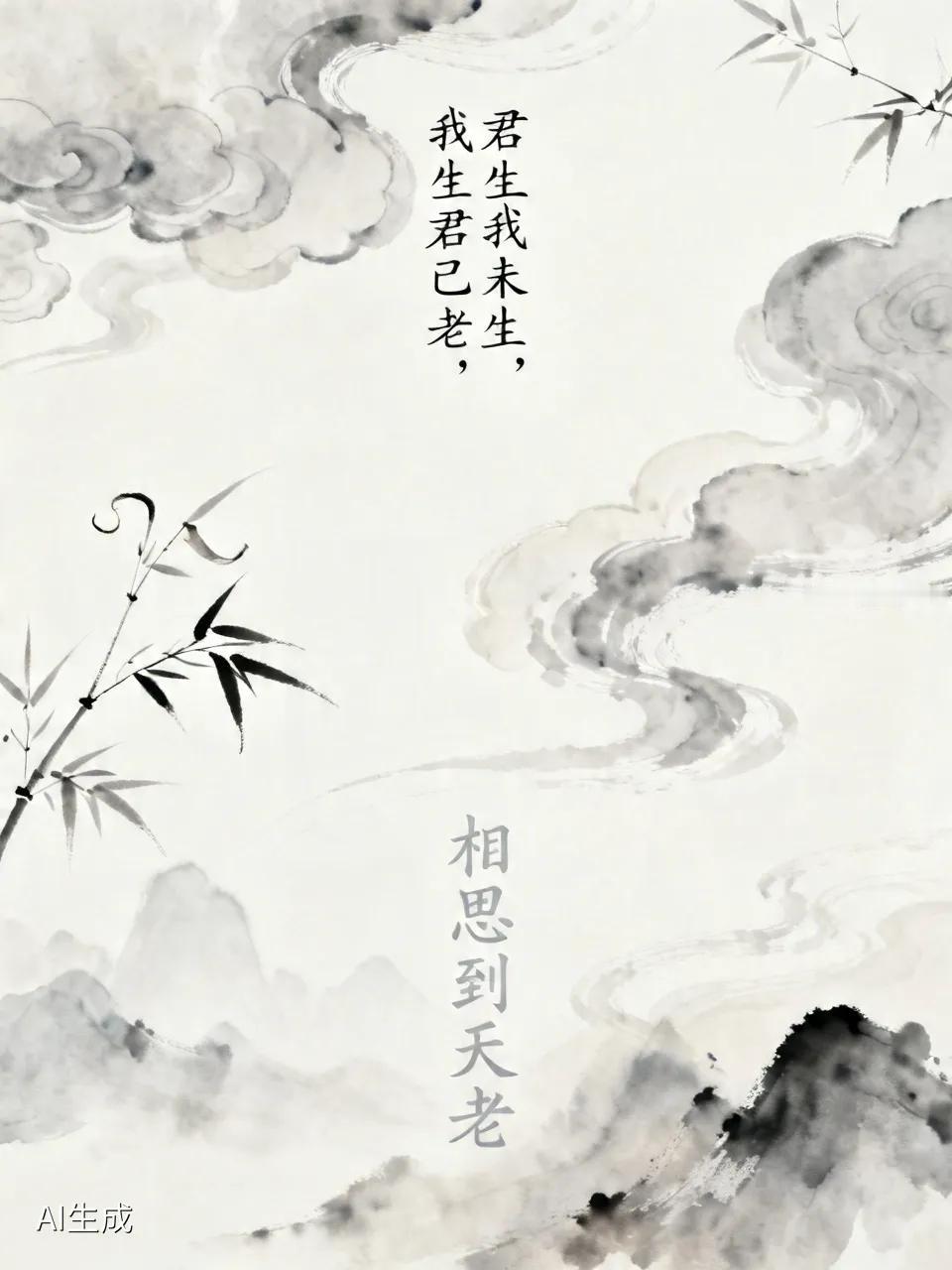 君生我未生,我生君已老。 君恨我生迟,我恨君生早。 恨不生同时,日日与君好。 隔
