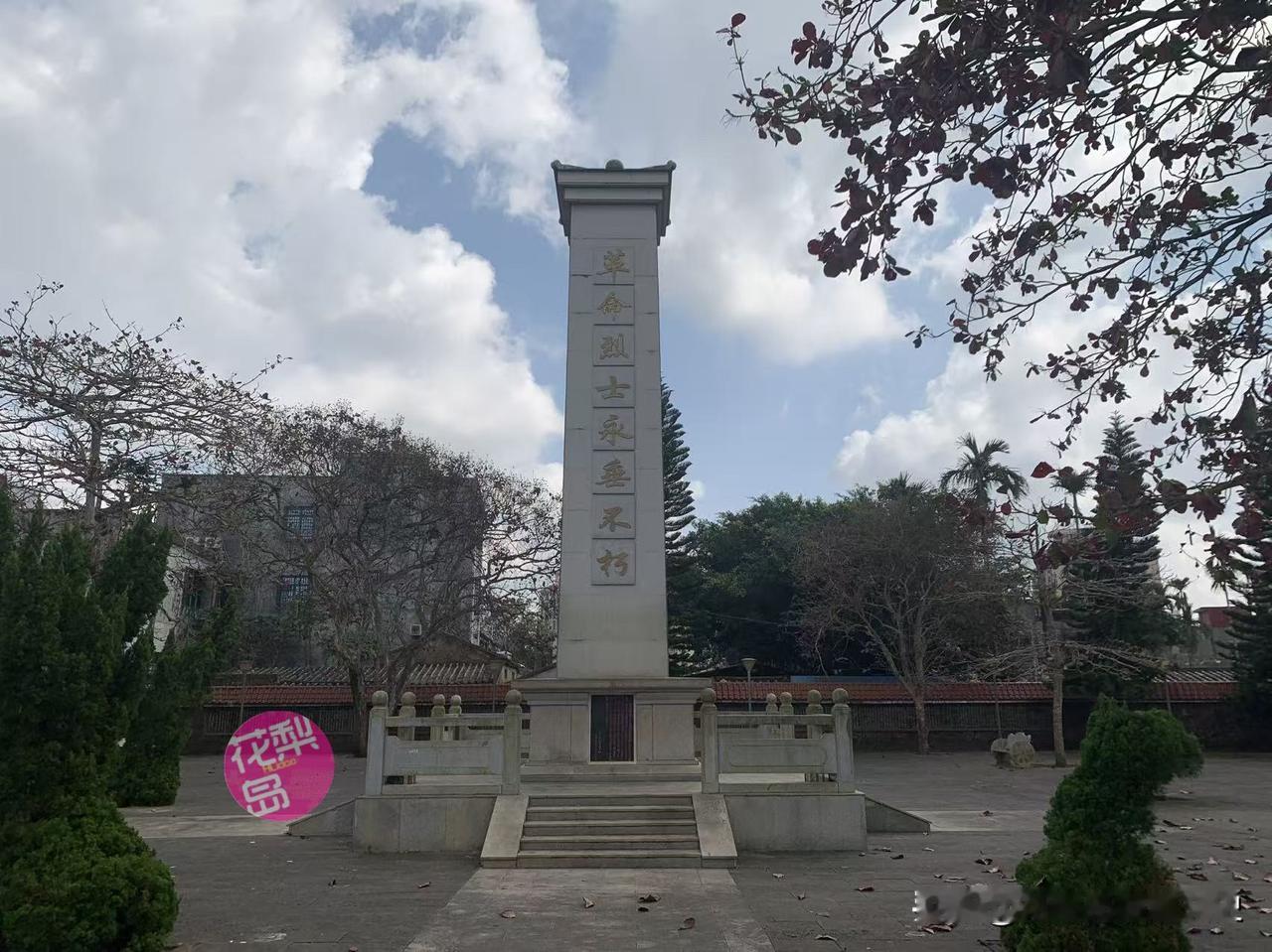 今日,陵园内,斜阳掠过高耸挺拔的枇杷树,红叶片片飘扬,树影中“革命烈士永垂不朽”的碑刻熠熠生辉,无名烈士墓静默矗立。