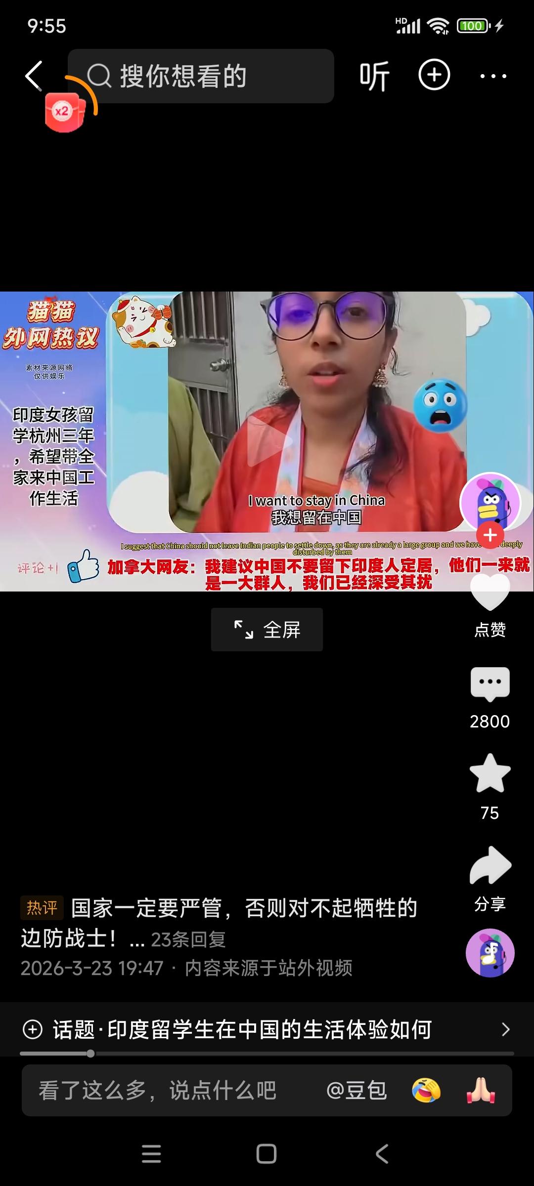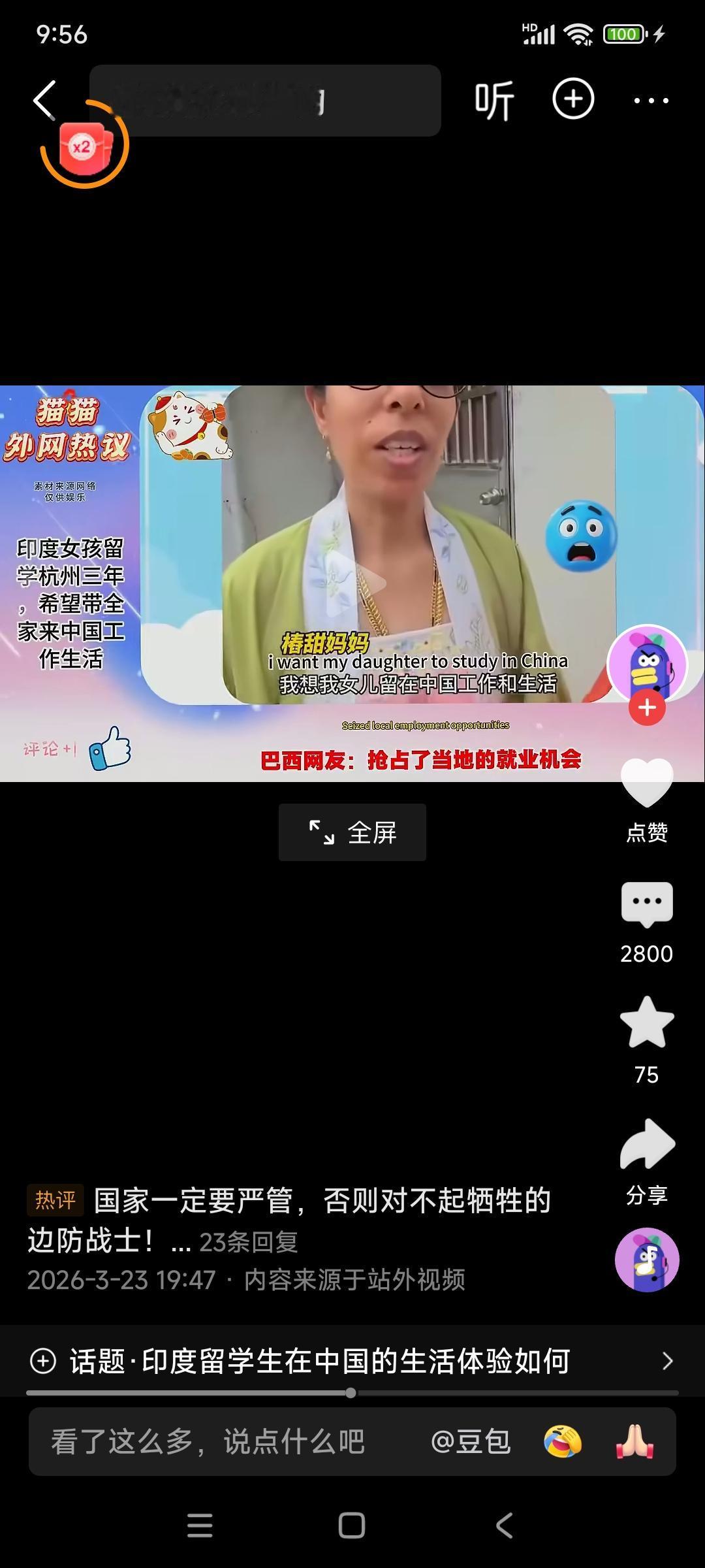 这个自称在浙江大学学医的印度女留学生,先夸我国科技先进,生活方便,接着说想让自己的女儿留在中国工作和生活,然后还想把儿子带过来。