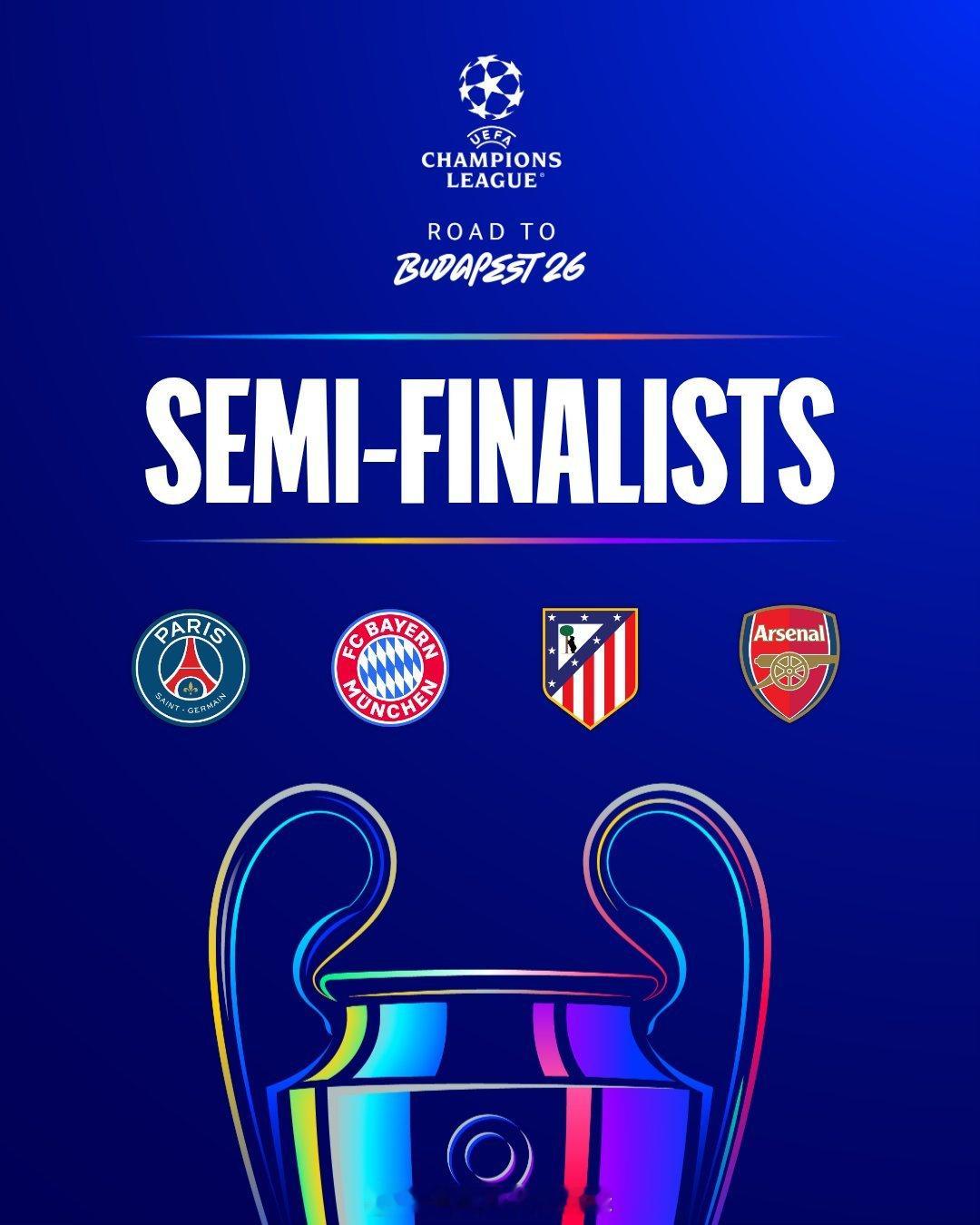 马德里竞技vs阿森纳首回合4月29日(马竞主场),次回合5月5日(阿森纳主场)