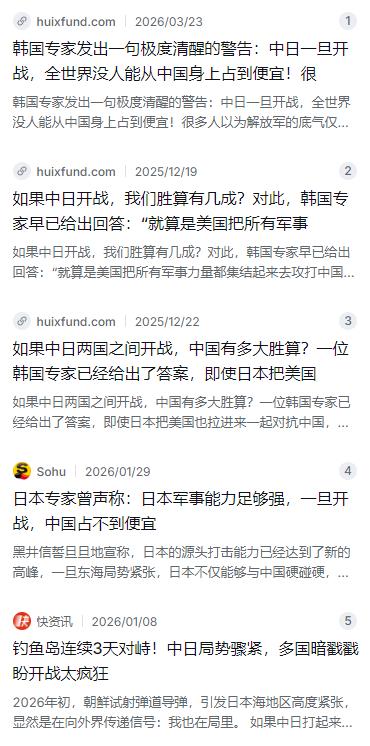 韩国专家发出警告:中日一旦开战,即使西方国家派出了支援,那么全世界也没有国家能够在中国的身上占到便宜。首先我们要清楚,咱们与日本之间的冲突,大概率依旧是不少国家关注的地方,原因很简单,那就是只要中日战争爆发,那么全世界不少国家很有可能都会插手这件事。