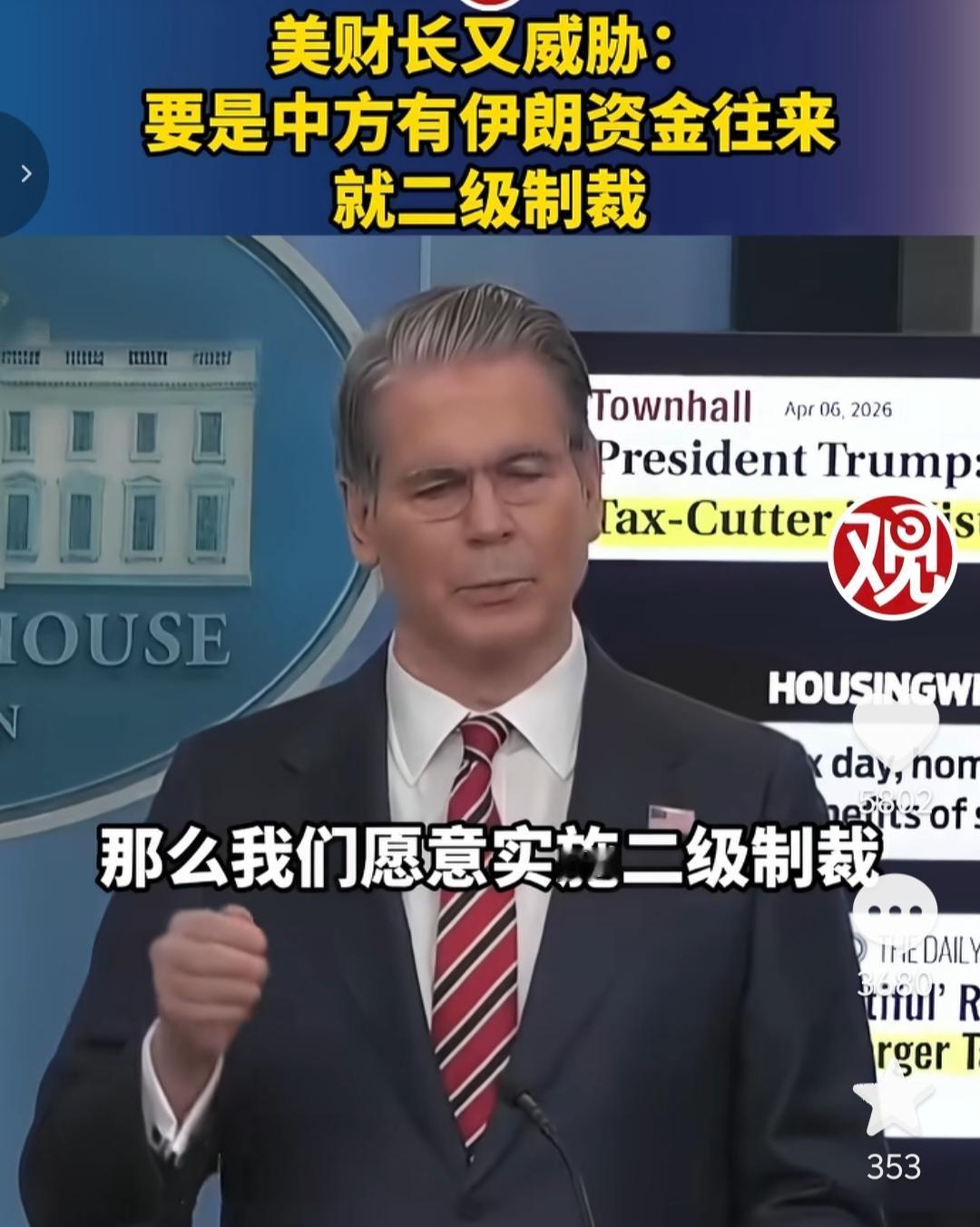 美国又开始威胁中国了,美国财长说中国购买了伊朗90%以上的石油,要是发现中国跟伊朗有资金来往,就会对中国实行二级制裁。