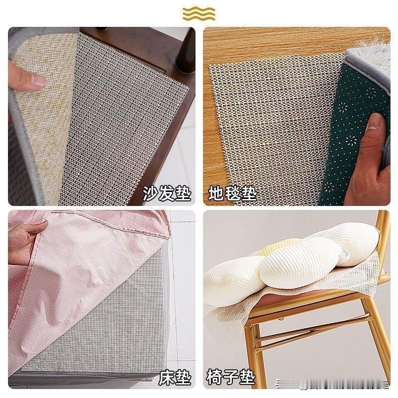 前阵子无意间刷到图中的PVC轻薄防滑垫,抱着姑且一世的心情买回来,居然解决了我长久以来的困扰,一片铺在床单之下,早晨醒来床单依然平整;铺在沙发垫之下,坐垫再也不会移位;我也不用一天多回的整理狗窝地垫。
