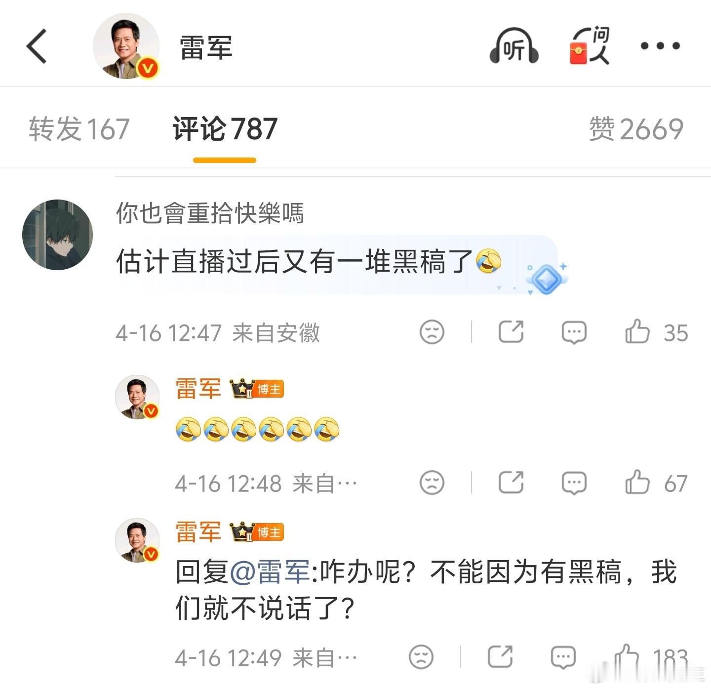 雷军明天开启新SU7北京到上海长途续航测试,称不能因为有黑稿,就不说话了。