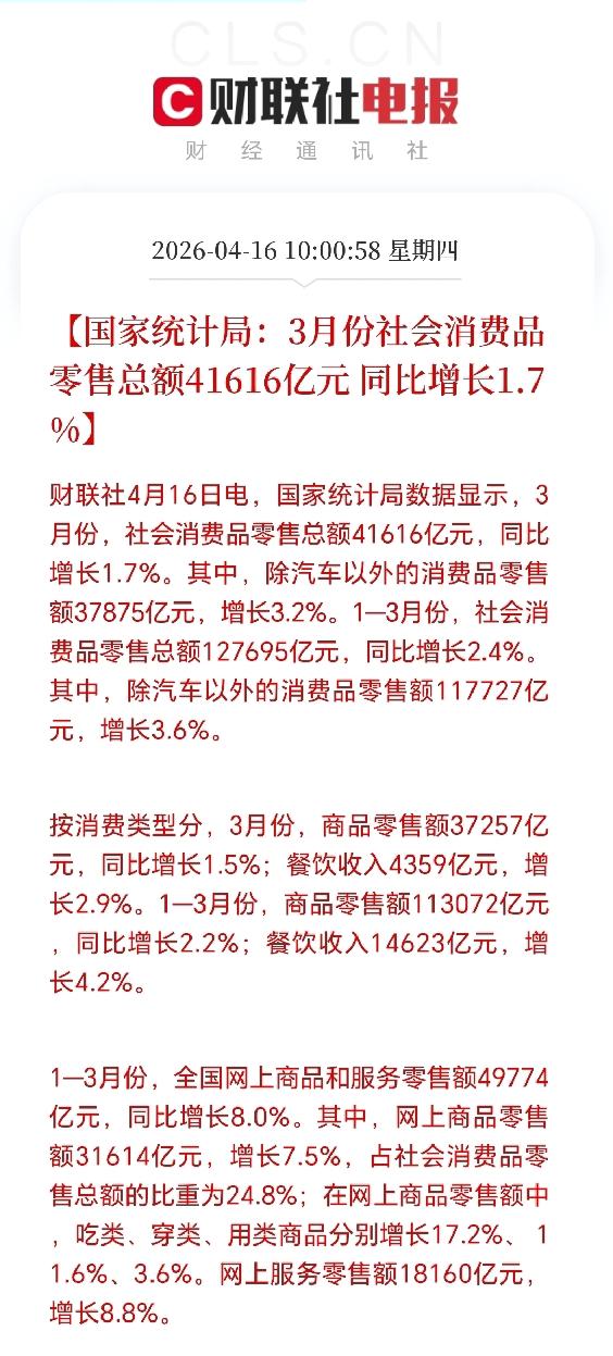 3月份同比1.7%,一季度同比2.4%,这消费数据确实不咋地。就好比满心期待一场盛宴,结果端上桌的菜却没什么滋味。