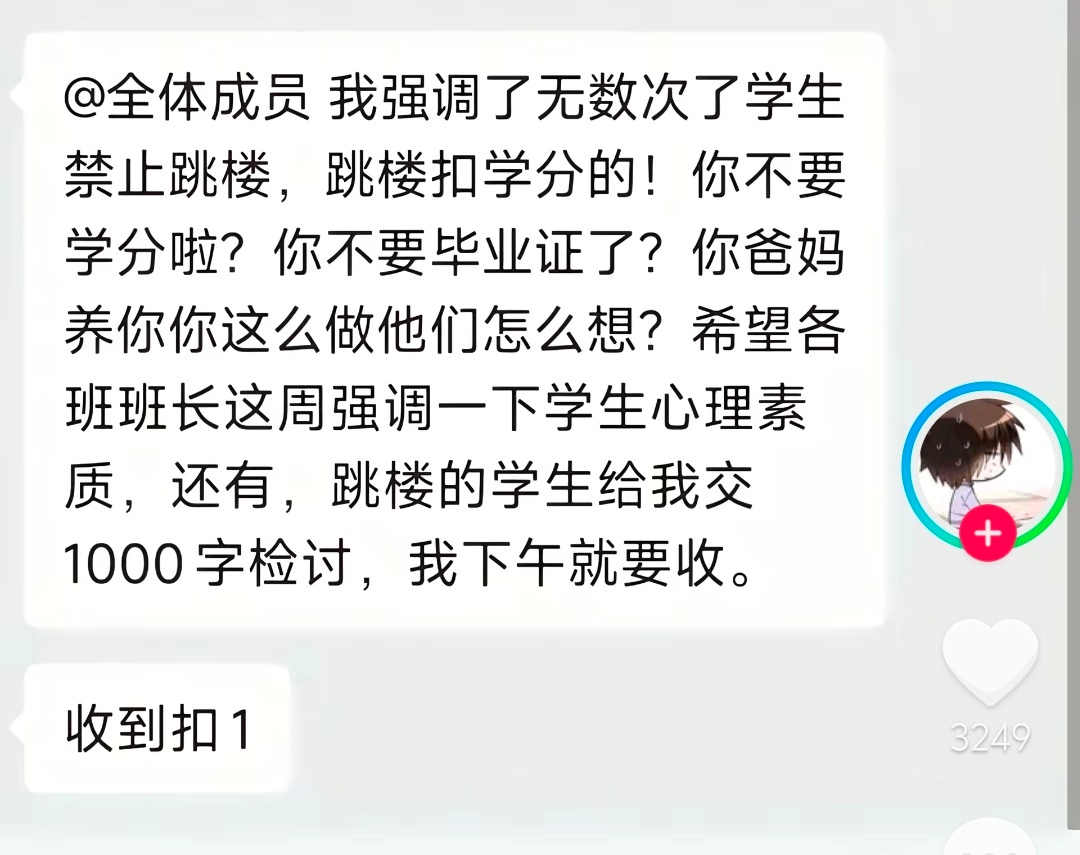 《跳楼的学生给我交1000字检讨》
