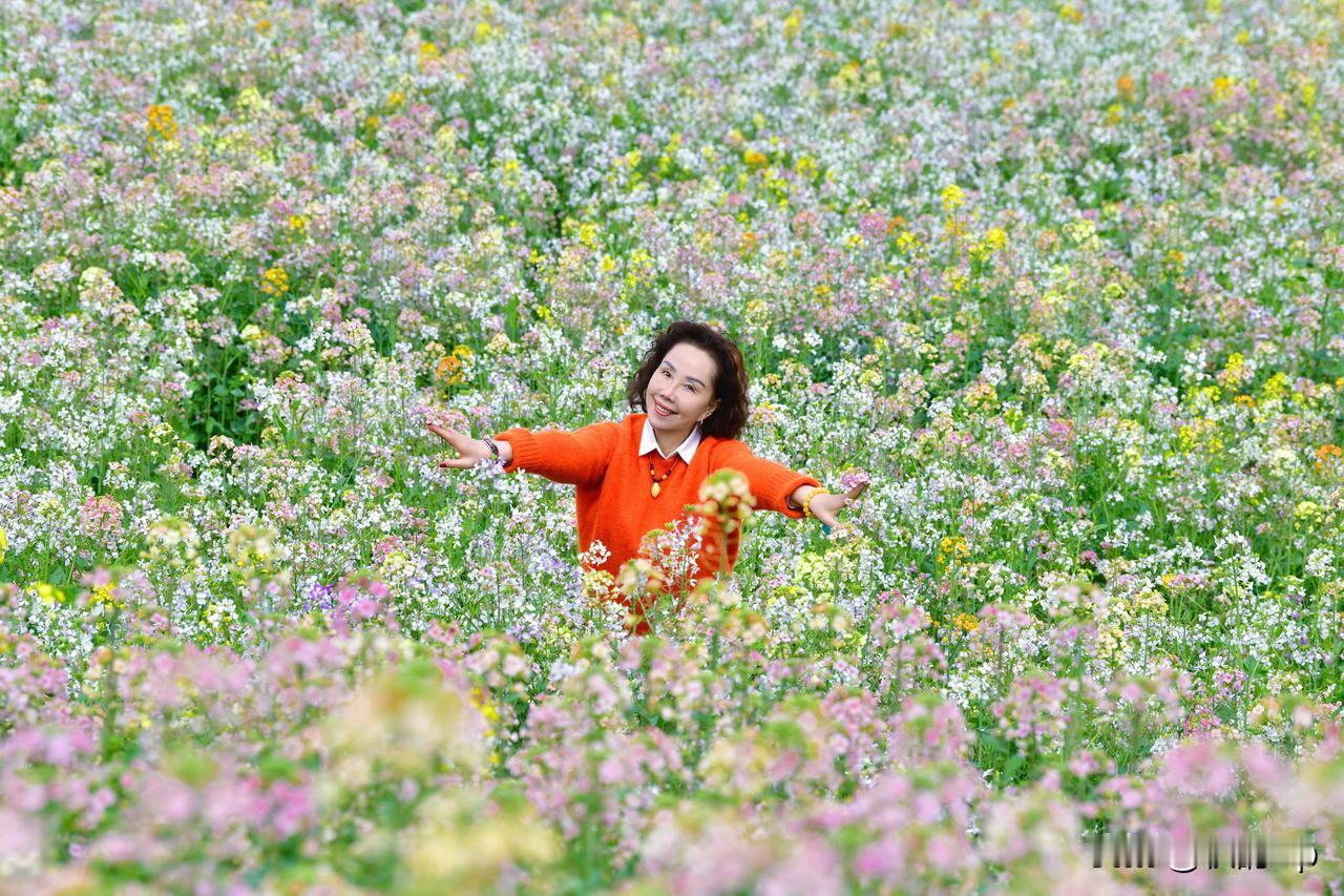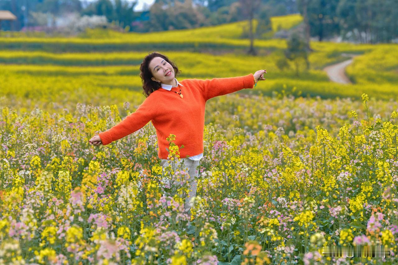 花间飘来缕缕清香,满眼尽是盎然春光。春天的色彩,由彩色油菜花绘的。