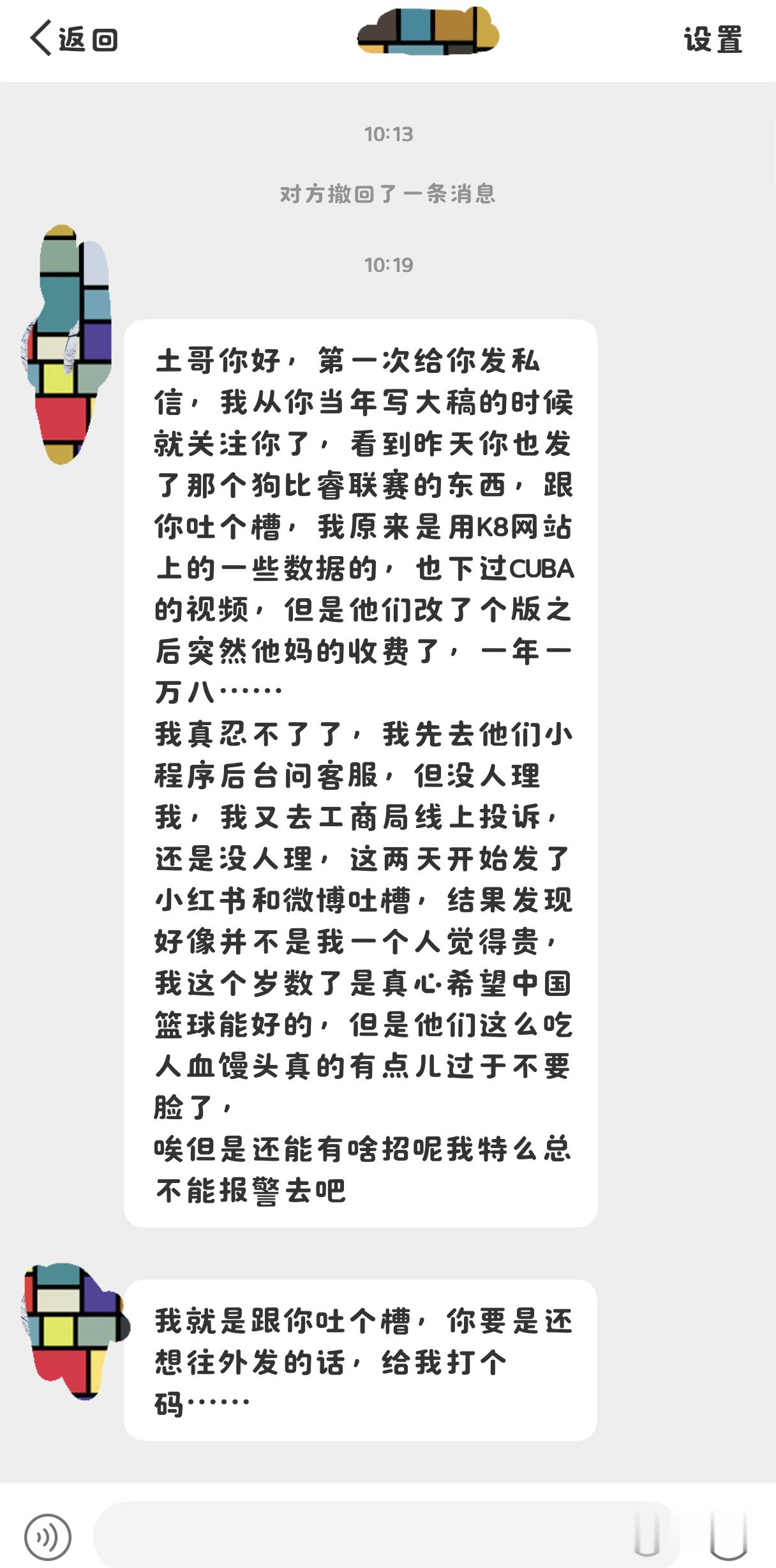 我们这个岁数,对中国篮球一直是有一种希望它好的心态,这种感情很纯粹,当年K8,也就是如今睿联盟小程序的网页版推出,所有人都觉得它会让中国篮球更好,但一下出来这个一万八的年费,你说是让中国篮球更好,还是让资本家更好,我实在是没办法评价。