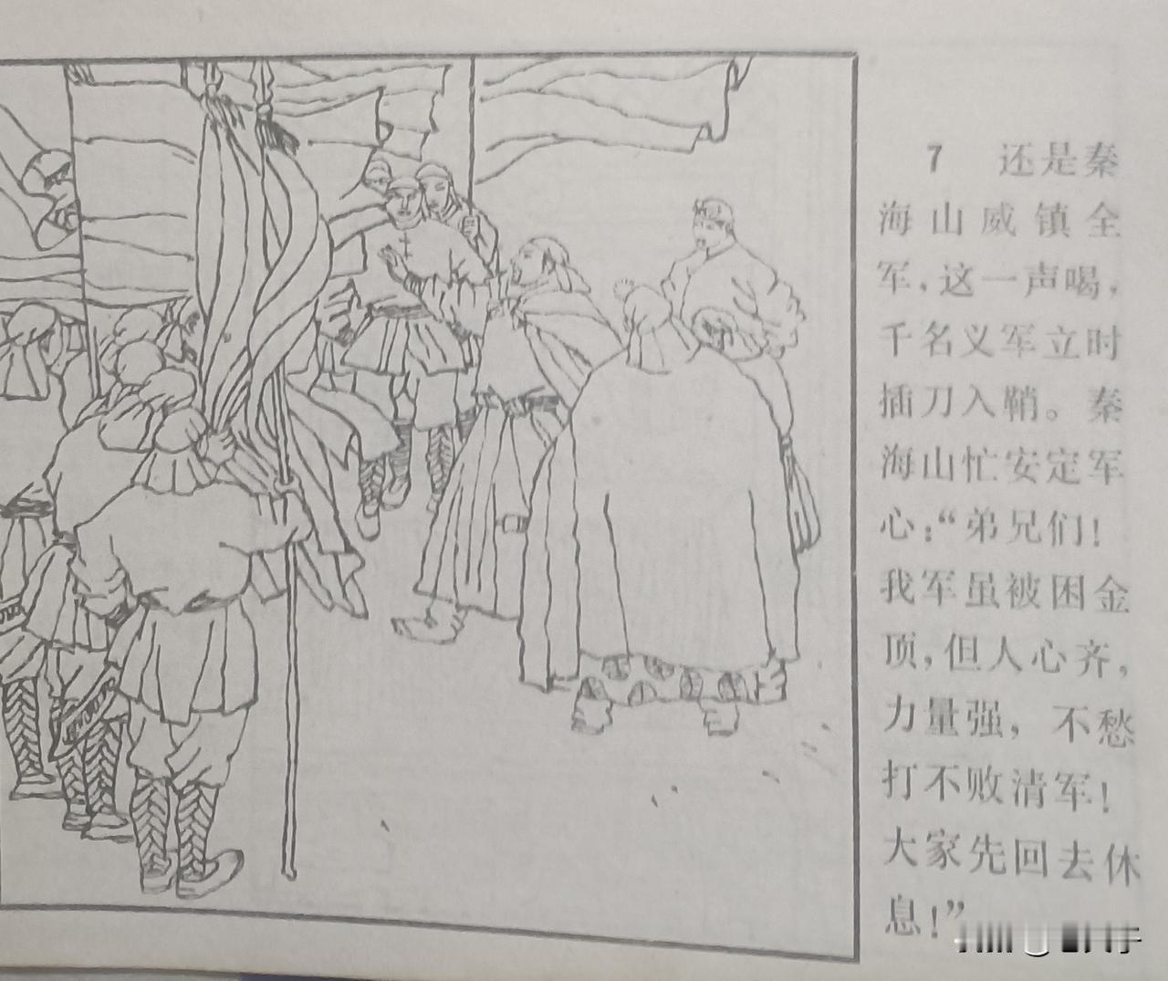 以秦海山为首的义军将将领英勇顽强,毫不动摇团结士卒,歃血盟誓,与顽敌进行坚决斗争。