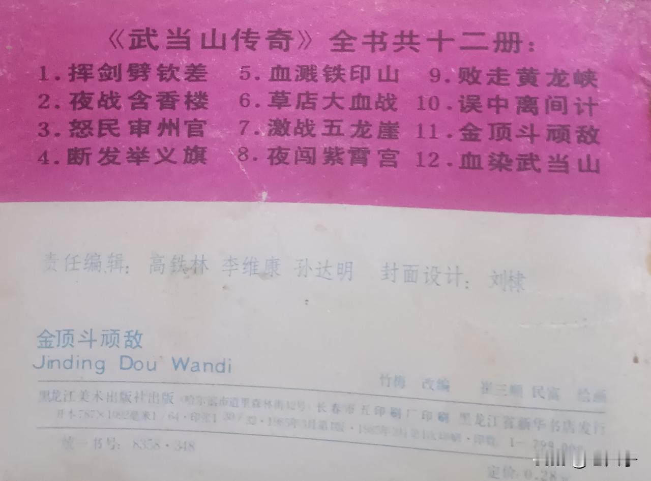 1985年3月,黑龙江美术出版社第一次出版,长春市第五印刷厂,第一次印刷,黑龙江省新华书店发行,总印刷数量,799000册,定价,0.28元(原创)。