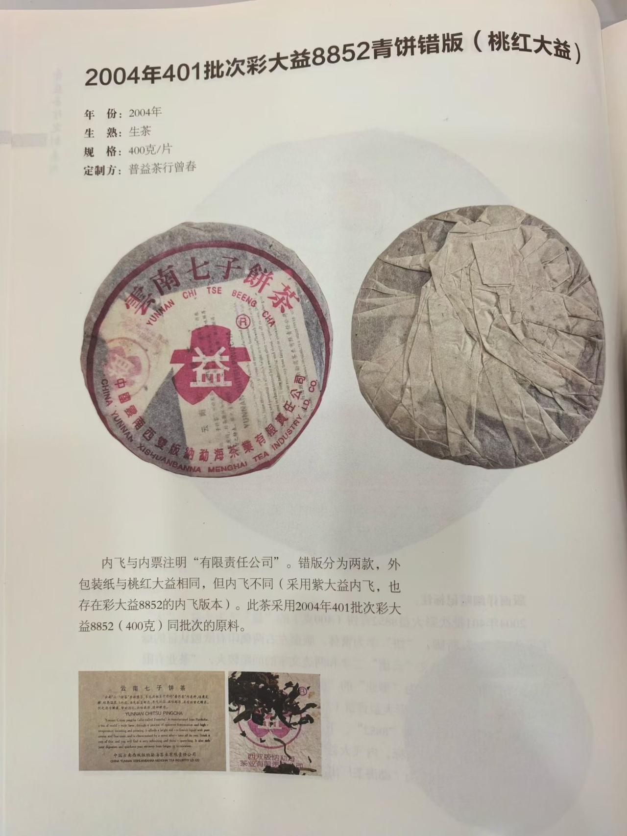 2004年勐海茶厂401批彩大益8852青饼错版