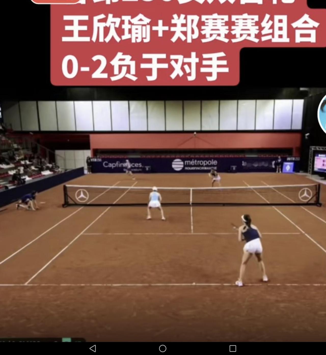 北京时间4月13日晚,WTA250鲁昂站女双首轮展开一场焦点战。被誉为“中国莎娃”的王欣瑜搭档郑赛赛,以0比2(2-6、3-6)不敌头号种子克罗马查娃/奥尔莫斯,遗憾止步首轮。