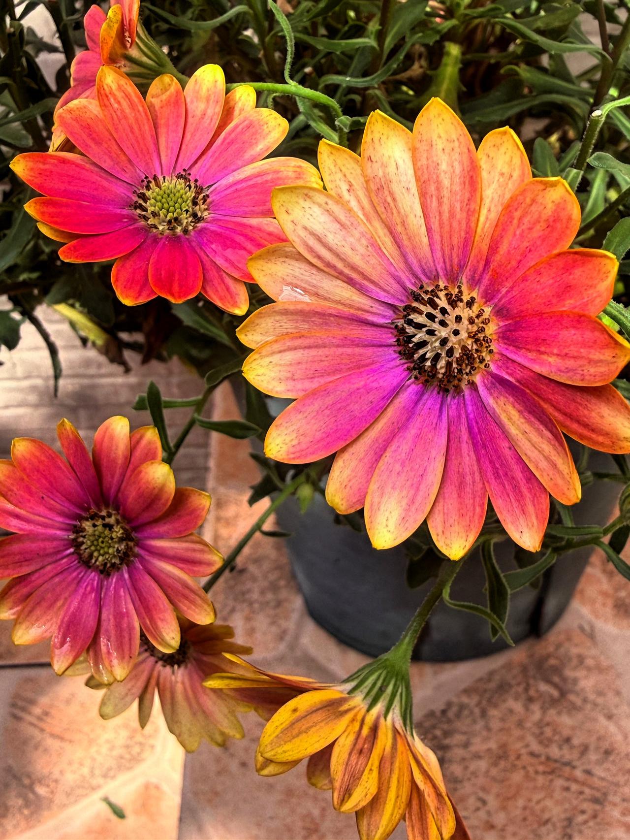 前两天下单的太阳花也到了,可角堇还在努力绽放,舍不得丢,又暂时没多余的花盆,干脆先把它们挤在一个盆里共生,等有空盆了,再好好给它们分盆安家吧~