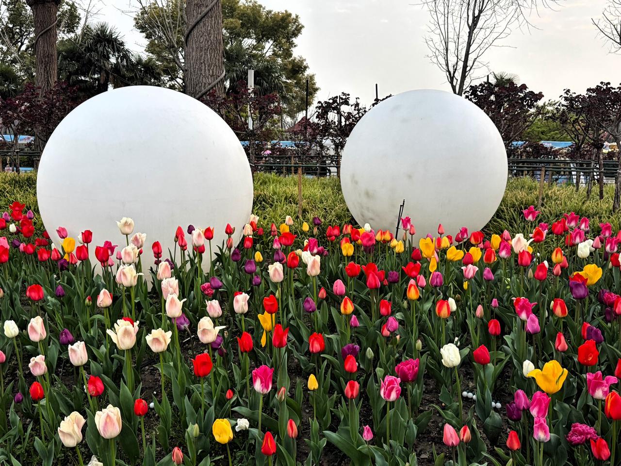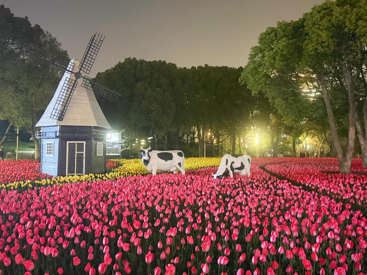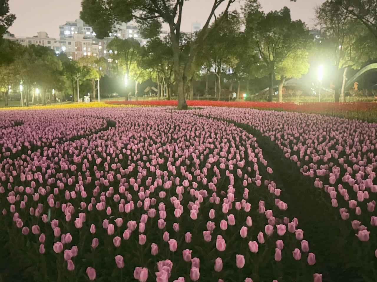 天暗下来了,我们直奔罗马广场,50万株郁金香+欧式罗马广场,是上海独有的春日油画!