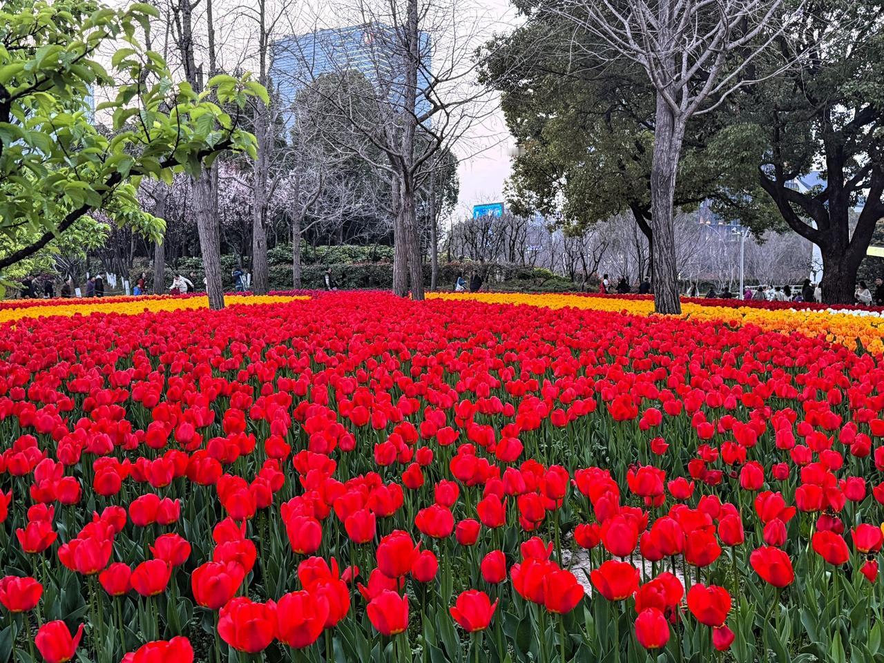周末和闺蜜在大宁久光碰头!从午饭聊到逛店试衣,走出商场已经五点多,直奔大宁公园追郁金香🌷