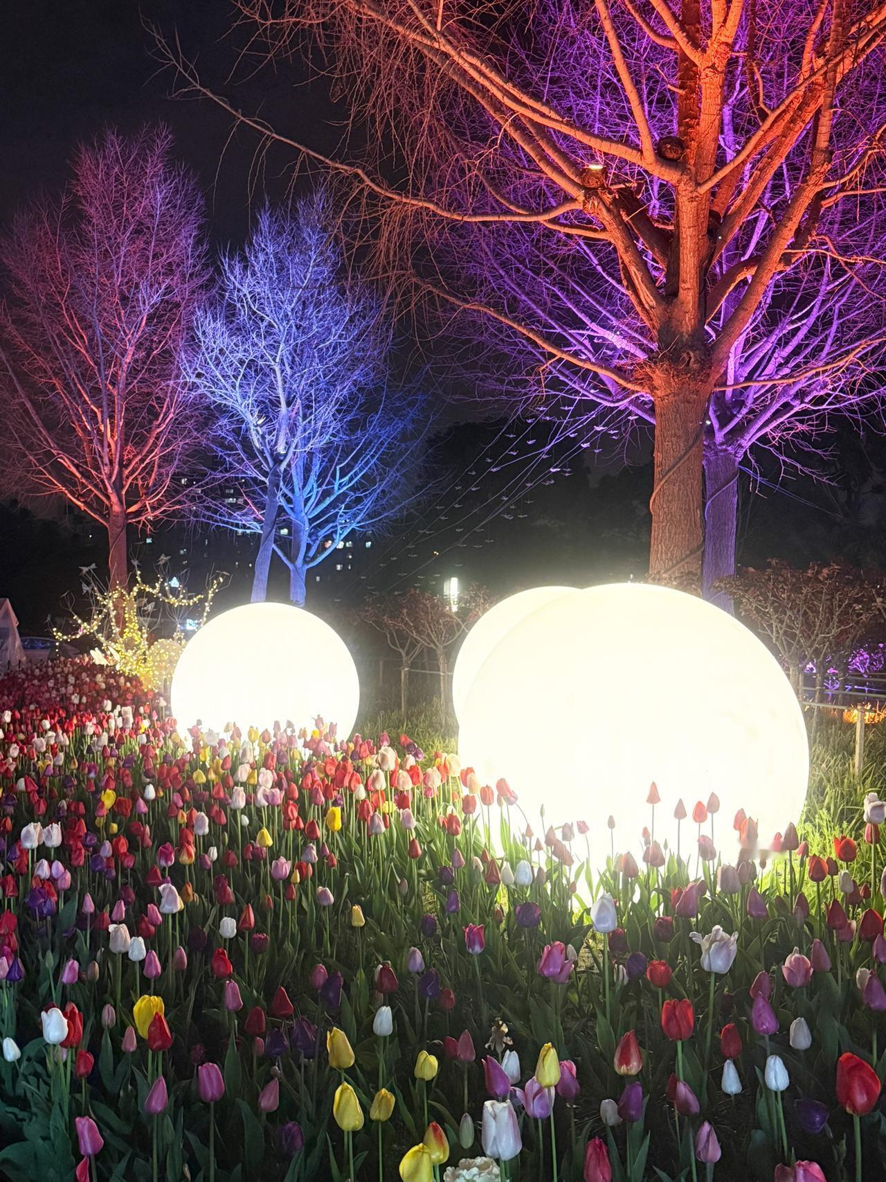 晚上赏花别有一番风味,不用赶时间,不用挤人潮,走走逛逛比白天更有氛围感。