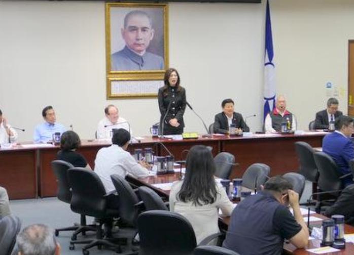 但最特别的还是党主席郑丽文身穿黑色的女版中山装高调亮相,中常委和“立委”们一阵鼓掌。